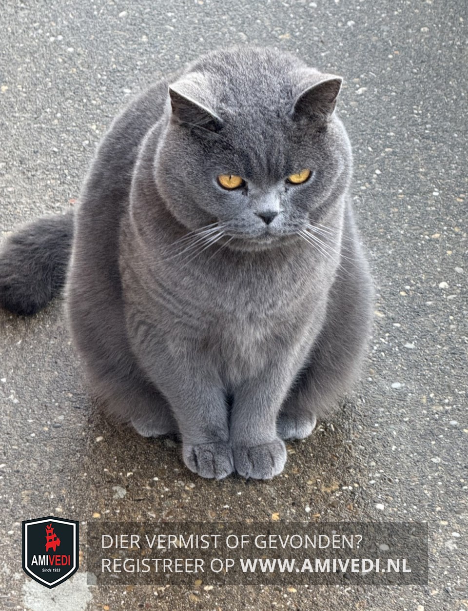 | Signalement | Geheel grijze Britse korthaar |