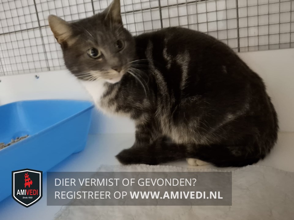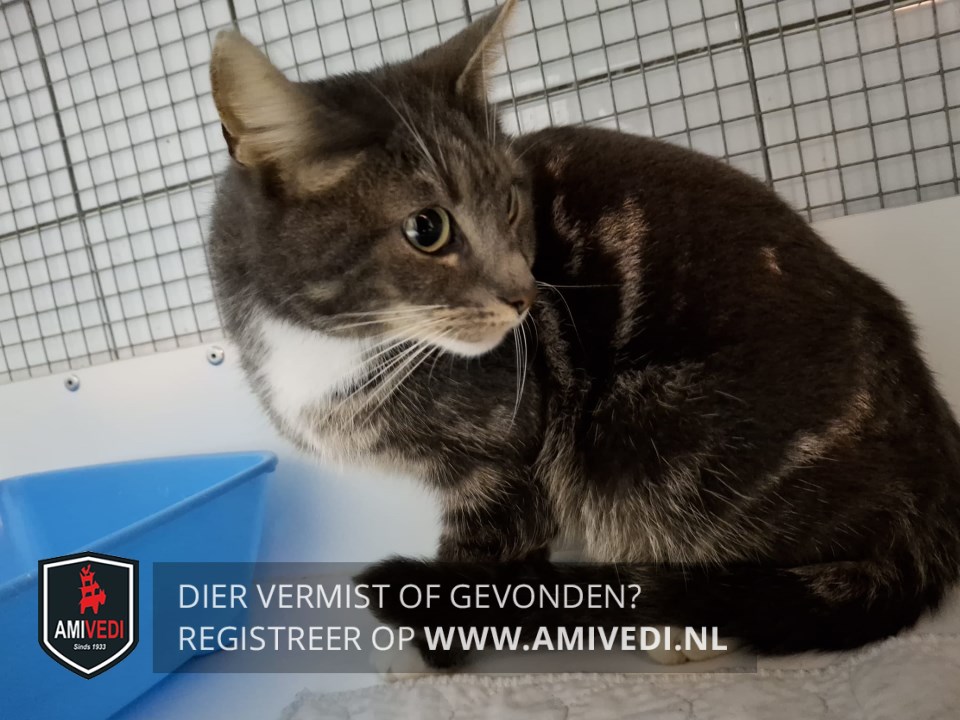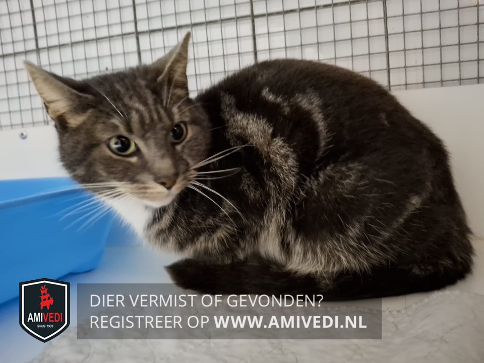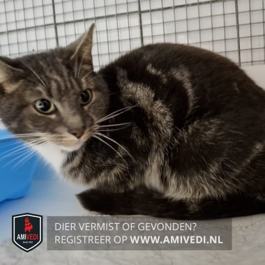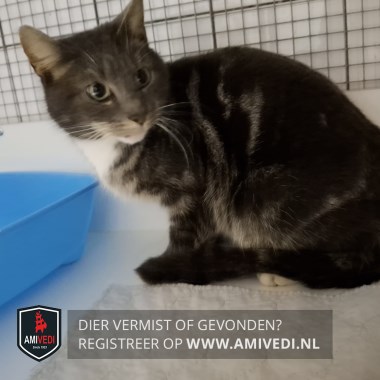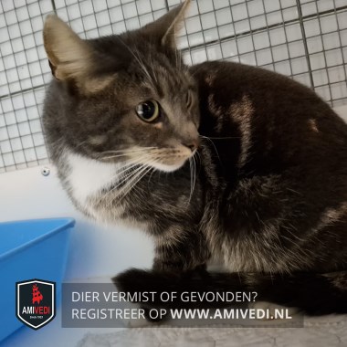 | Signalement | Cypers bruin/grijs/zwarte poes, wat wit bij het bekje, witte kin, hals en bef. Wat wit op de borst en bef. Witte sokjes. Bijna geheel zwarte staart. Heel erg sociaal. |