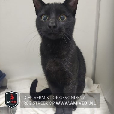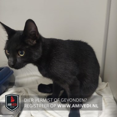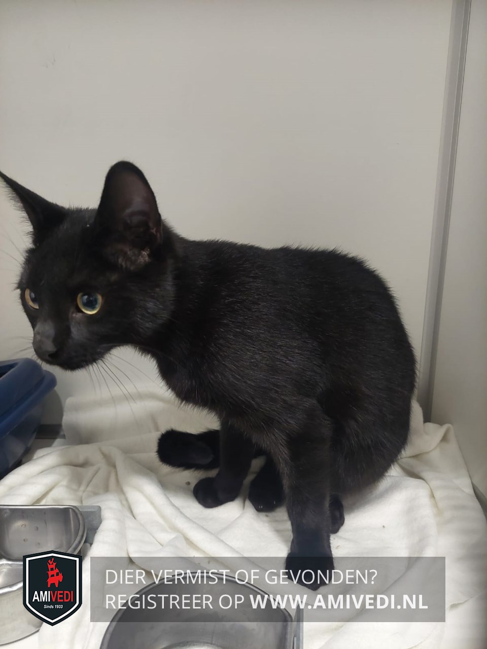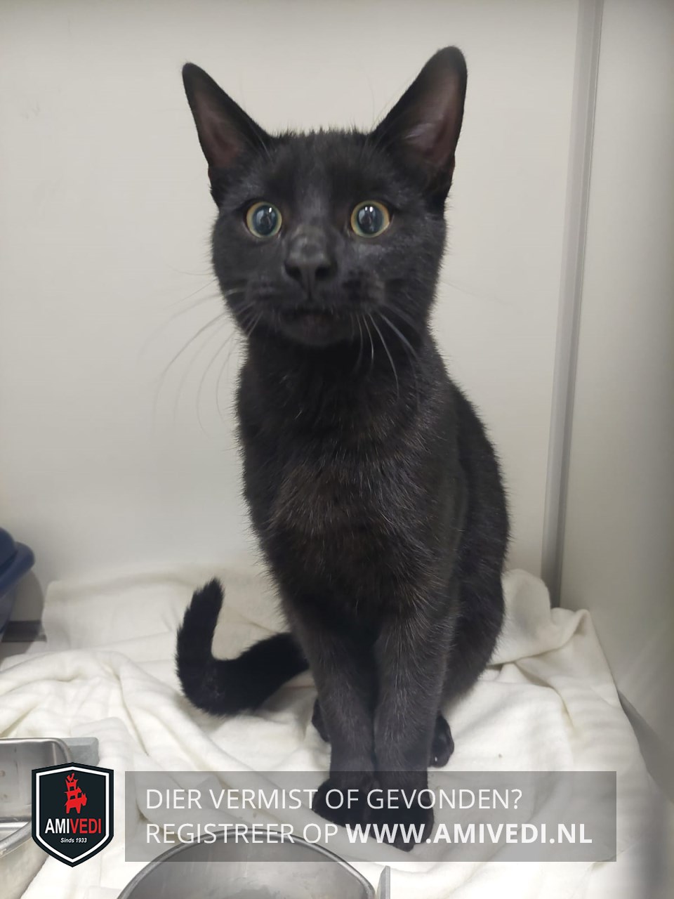 | Signalement | Geheel zwarte kat/poes, gele ogen. |