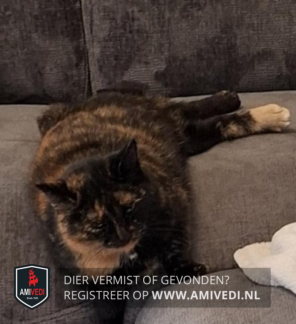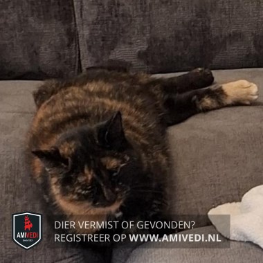 | Signalement | Schildpad, Loopt enigsinds mank rechts achter. Rode vlek boven beide ogen als een soort wenkbrauwtje, rode kin, rode vlek vanaf de rechter kaaklijn naar de nek en voorkant schouder, lijf gemeleerd, rechts achter een rood voetje met witte teentipjes |