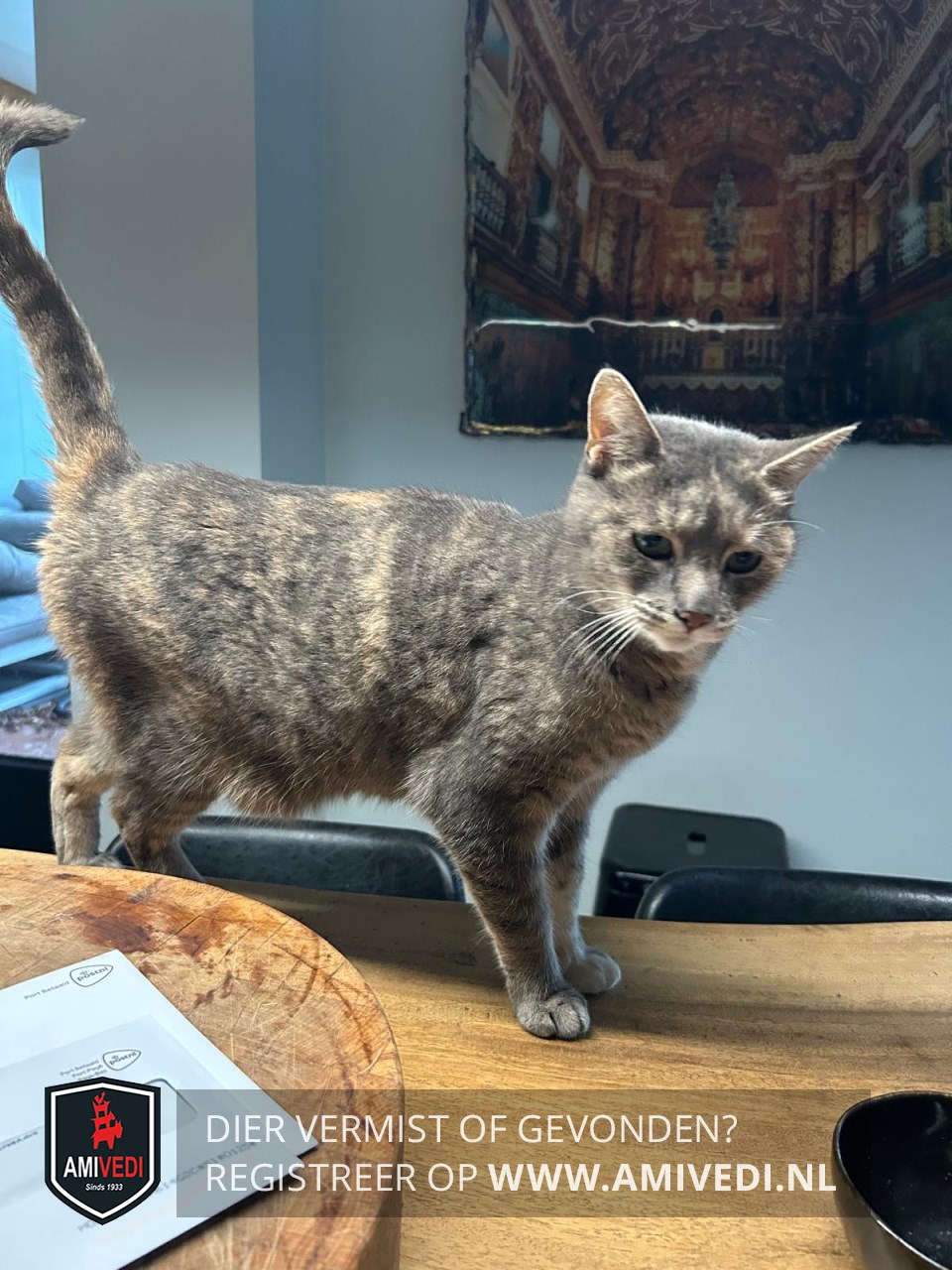 | Signalement | Lichtrood/grijs gemêleerde poes, wat wit bij het bekje. Heeft een harde miauw. |