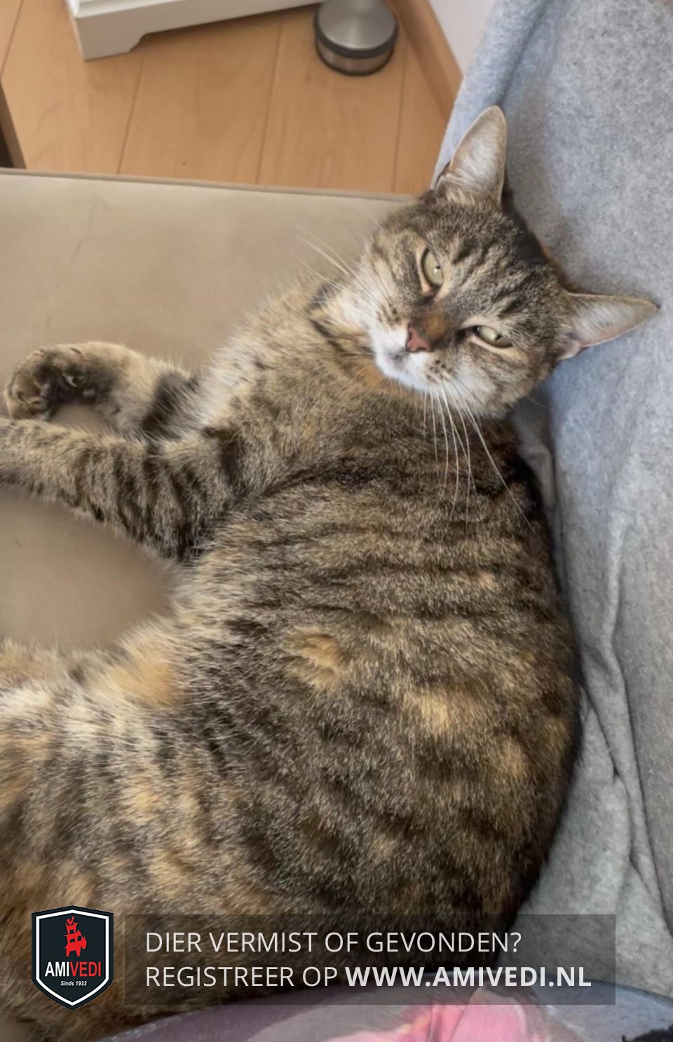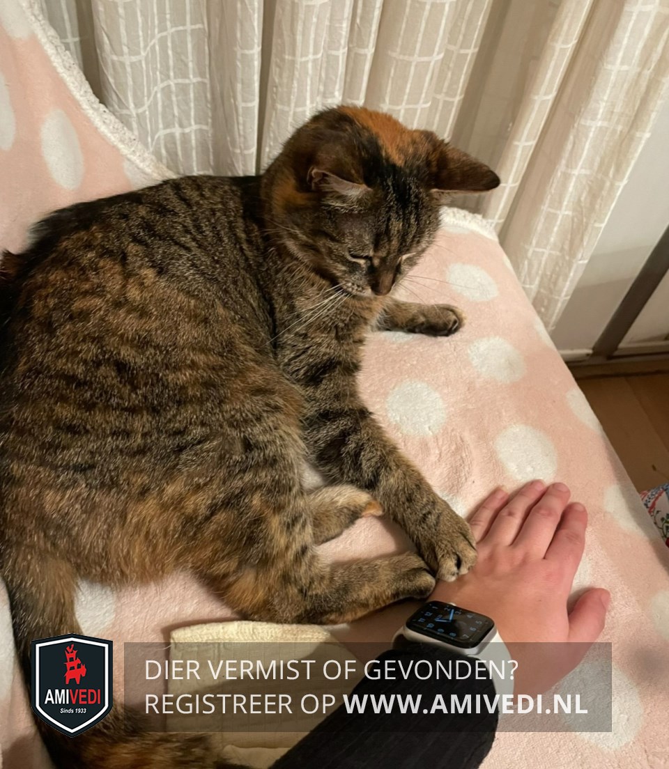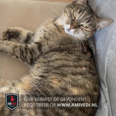 | Signalement | Cypers bruin/beige poes, bruin neusje, wit rond het bekje en op de kaaklijn. Rode vlek op haar kopje. Geel/groene ogen. |