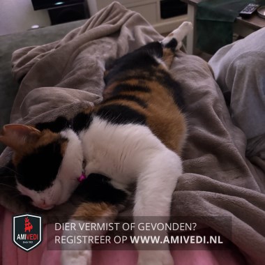 | Signalement | witte kop met zwart bij de ogen en rood bij de oren, witte hals en nek, zwarte bef, rode buik, rug is rood met zwarte strepen, aan de achterkant zwart, rechter voorpoot is wit, rechter voorpoot is wit met bovenin een rode en zwarte vlek, witte sokken aan de achterpoten In beide oren zitten scheuren |