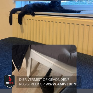 | Signalement | Zwart, met een klein wit vlekje in zijn nek. |