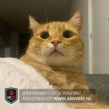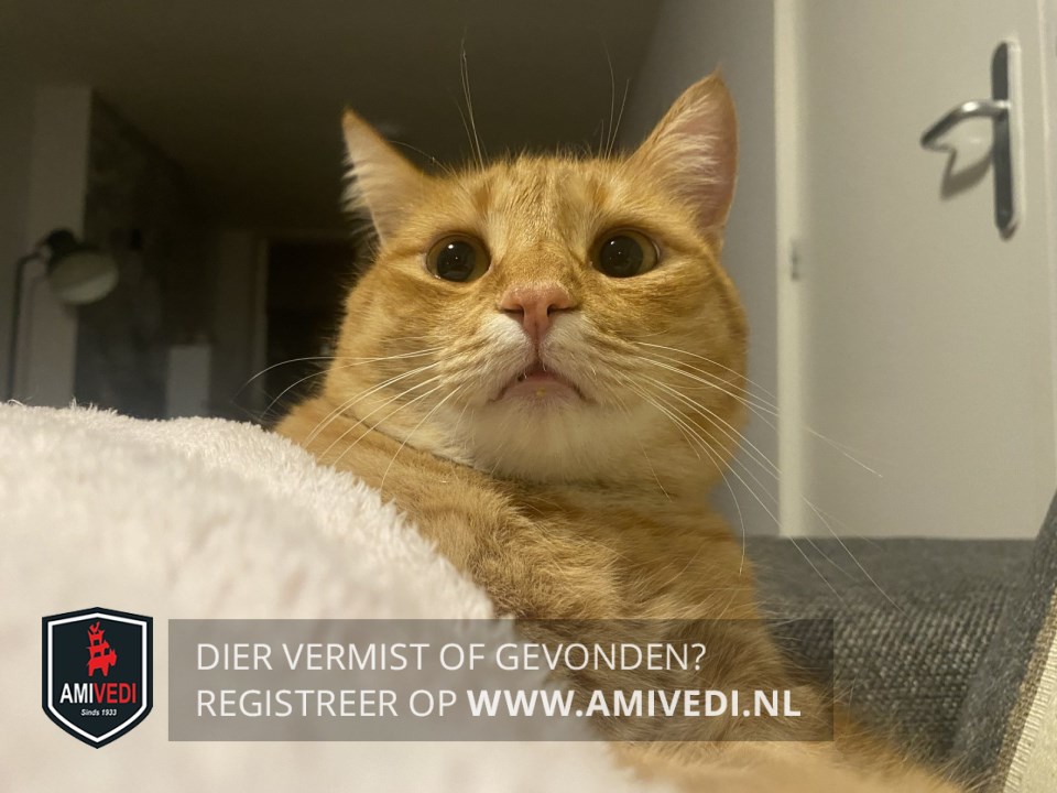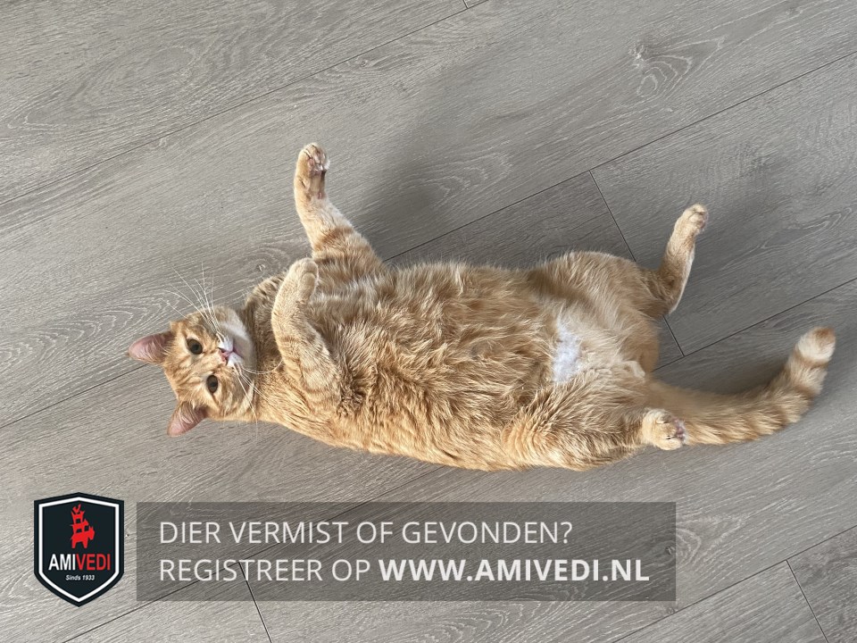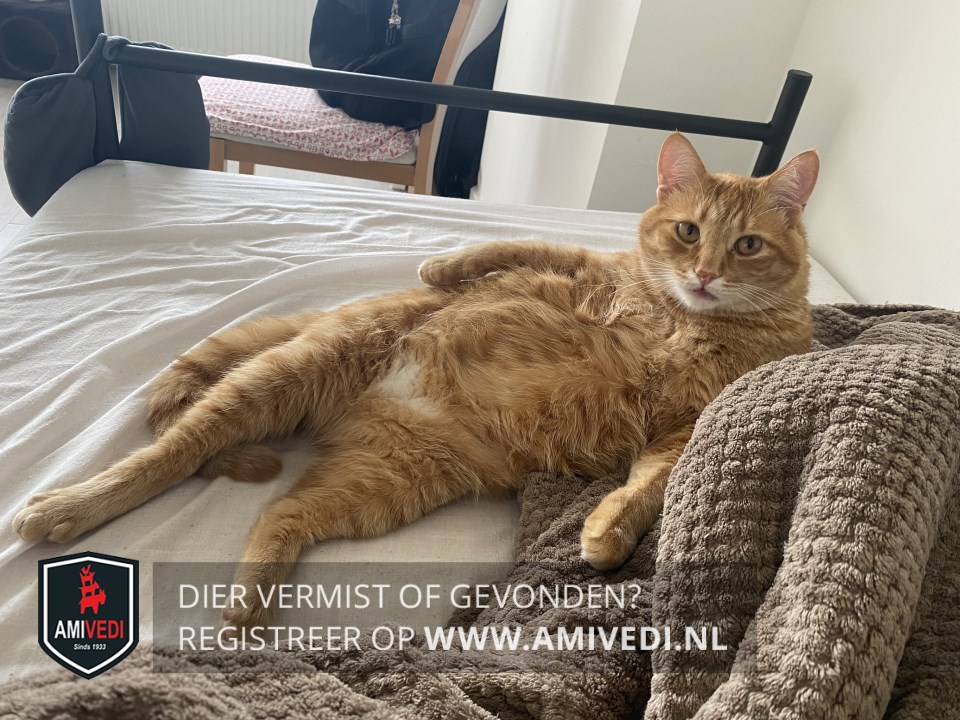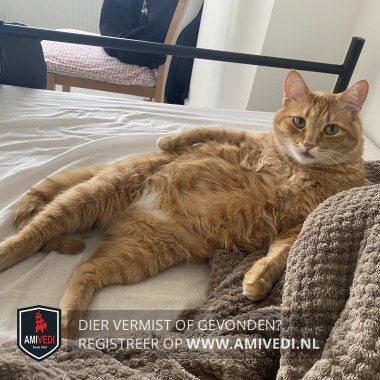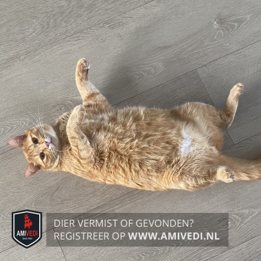 | Signalement | Cypers rood gestreepte kater met wat wit aan de bek, beetje wit aan de bef en aan de onderkant een witte plek in de vorm van een hartje, voor de rest cypers rood gestreept. |