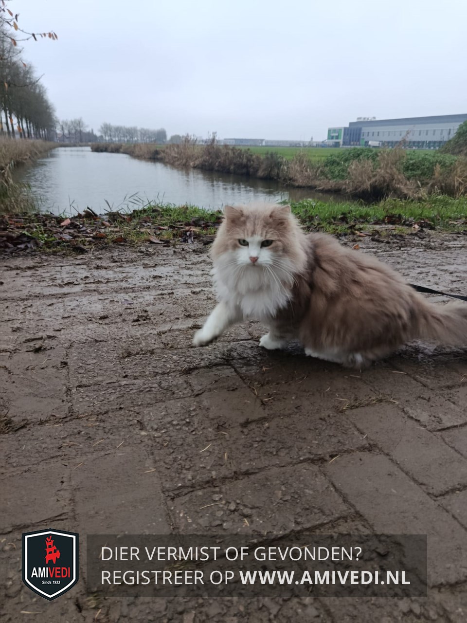 | Signalement | Bruine oren,witte snoet,witte borst,witte rechter voorpoot,witte sok aan de linker voorpoot,bruine rug,witte sokken aan de achterpoten,bruin/witte staart. |