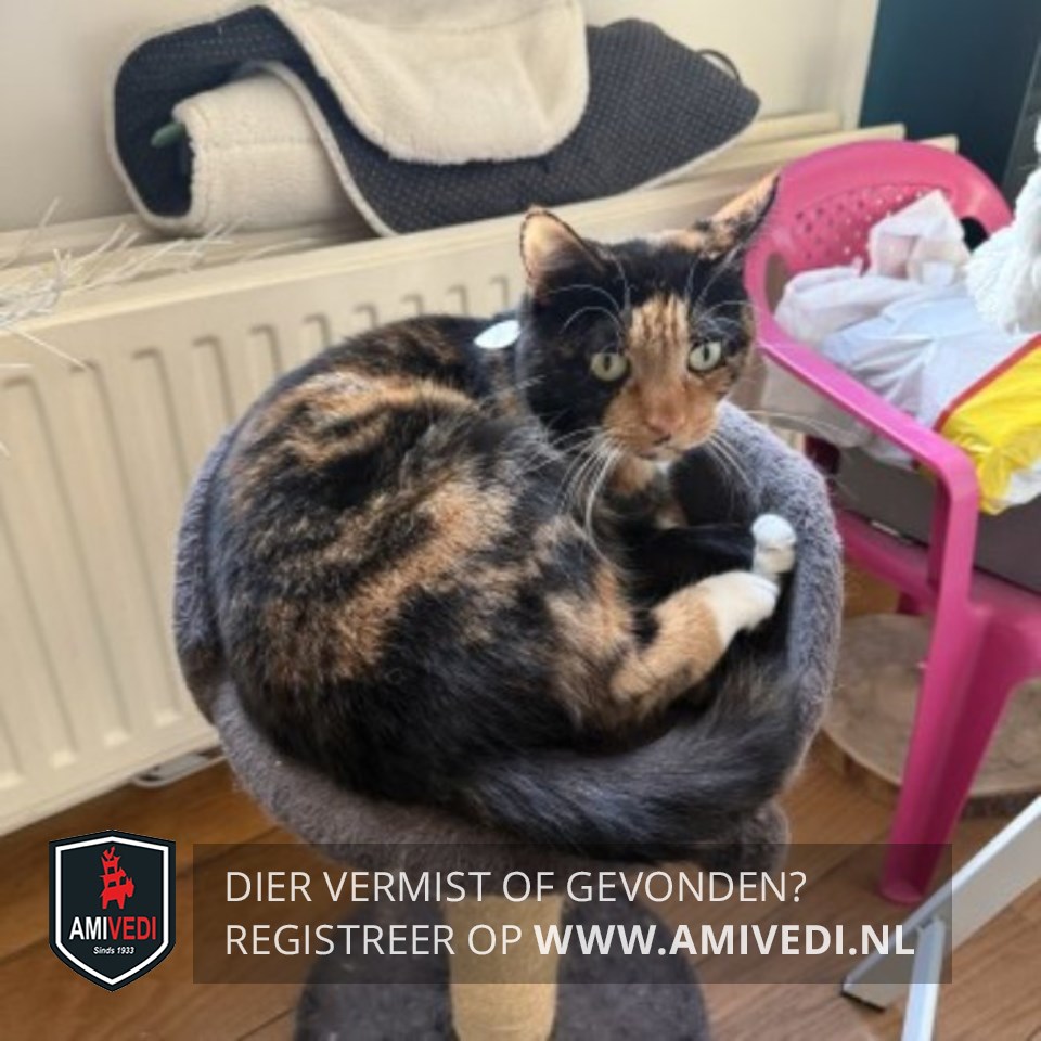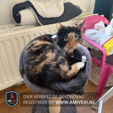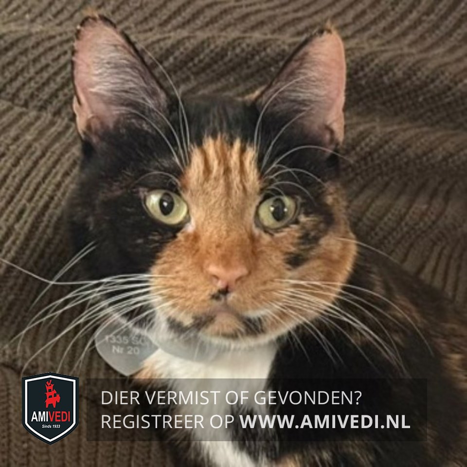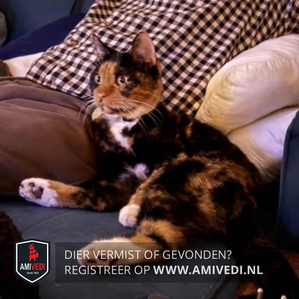 | Signalement | Kop; zwart over de oren, rechts tot aan de kaak, cypers rood tussen de ogen en om de neus, rechterwang zwart/rood, linkerwang rood met wat zwart, zwarte vlekjes om de bek, kaaklijn wit. Witte bef. Voorpoot links rood met een witte voet. Achterpoten zwart/rood met witte sokken. Rug zwart/rood gevlekt. Leia is heel aanhankelijk. Halsbandje heeft een bluetooth tracker en hartje met ons adres. |