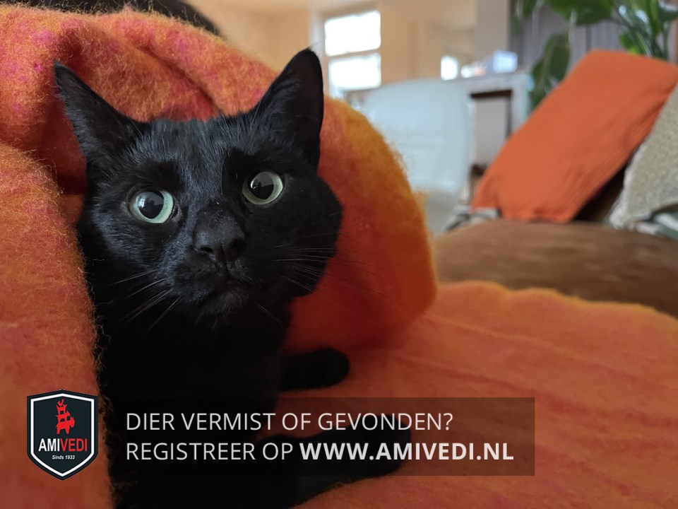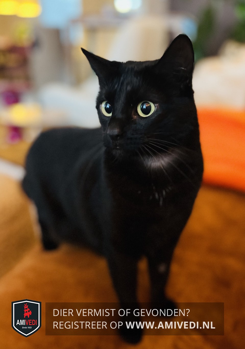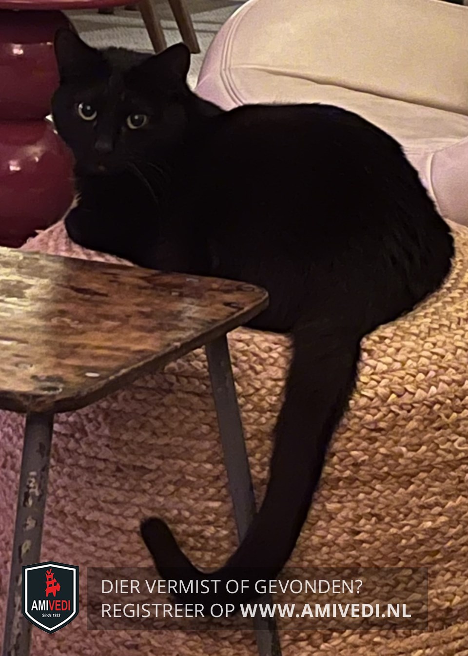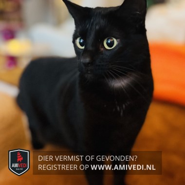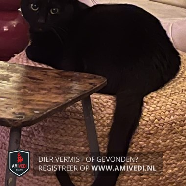 | Signalement | Zwart, operatie gehad waardoor een geschoren plekje op kin en pootje, heeft nog maar enkele tandjes. |