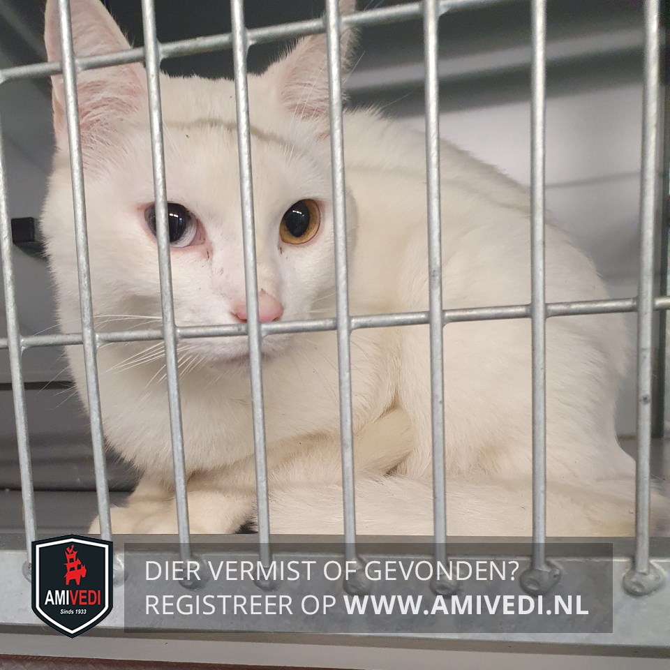 | Signalement | Witte kater met 1 blauw oog en 1 groen oog. |