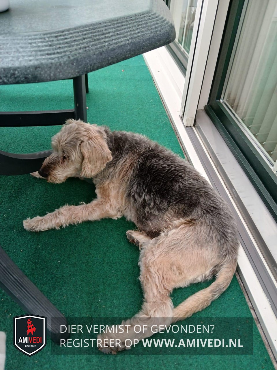 | Signalement | Beige/blond, donkergrijs in de nek en op de rug. Nora is doof. |