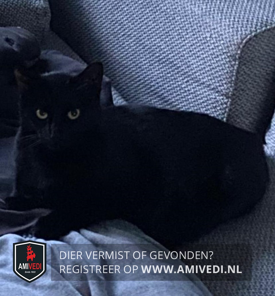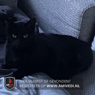 | Signalement | Volledig zwarte kater, gelige ogen |
