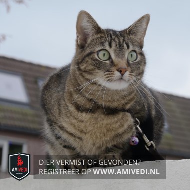 | Signalement | Cyperse bruin zwart gestreepte kat met een bruine bles en wat wit aan de snorharen. Witte kin en een gestreept lijfje. |