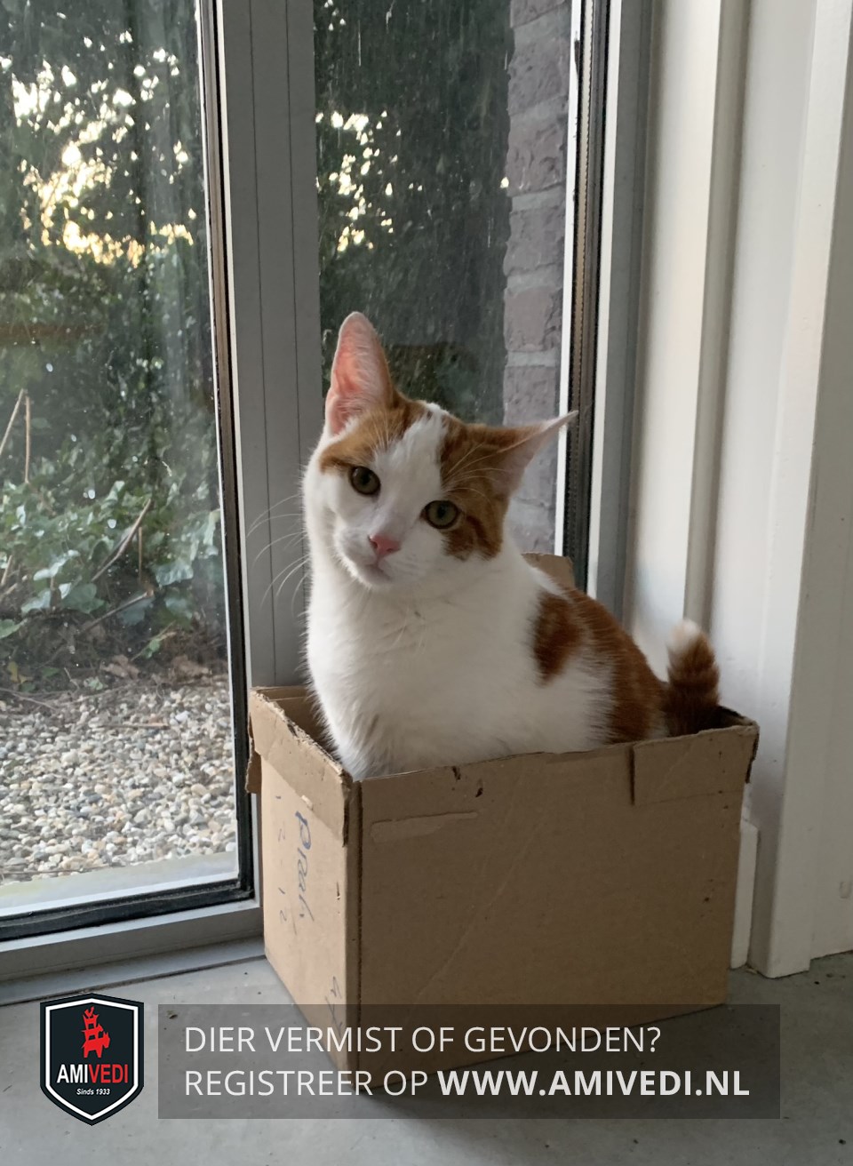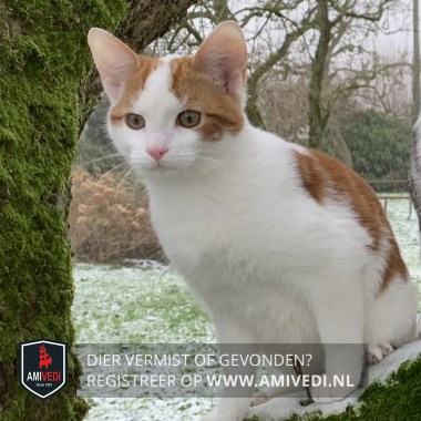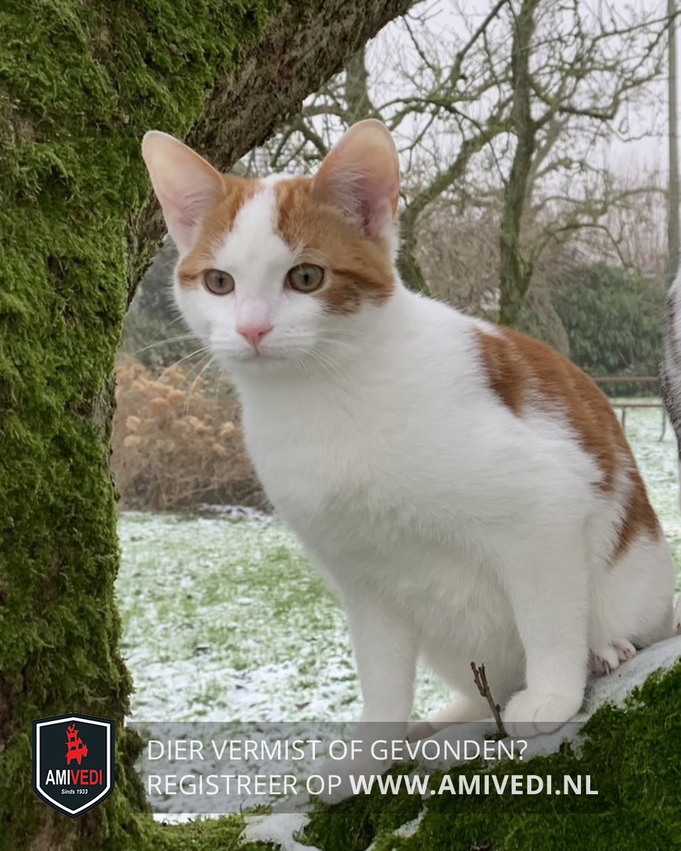 | Signalement | Wit met rood/oranje cyperse vlekken. Neus, mond, kin, bef t/m de buik wit. Alle 4 de poten volledig wit. Rode staart, uiteinde een klein wit puntje. |