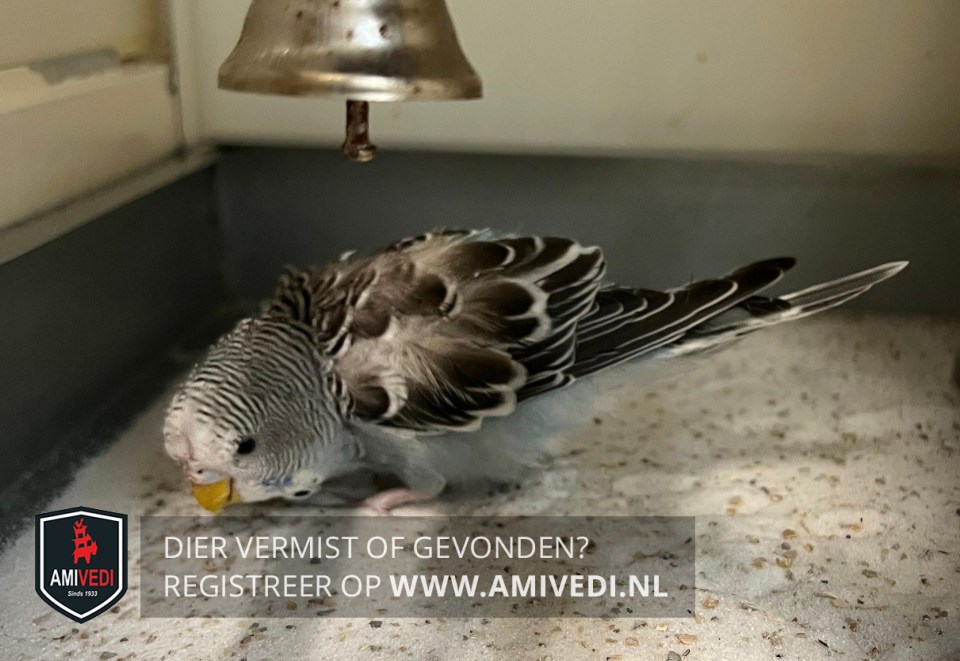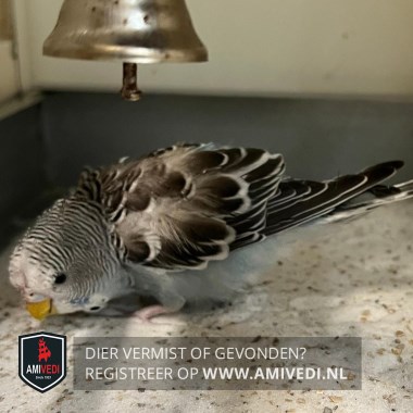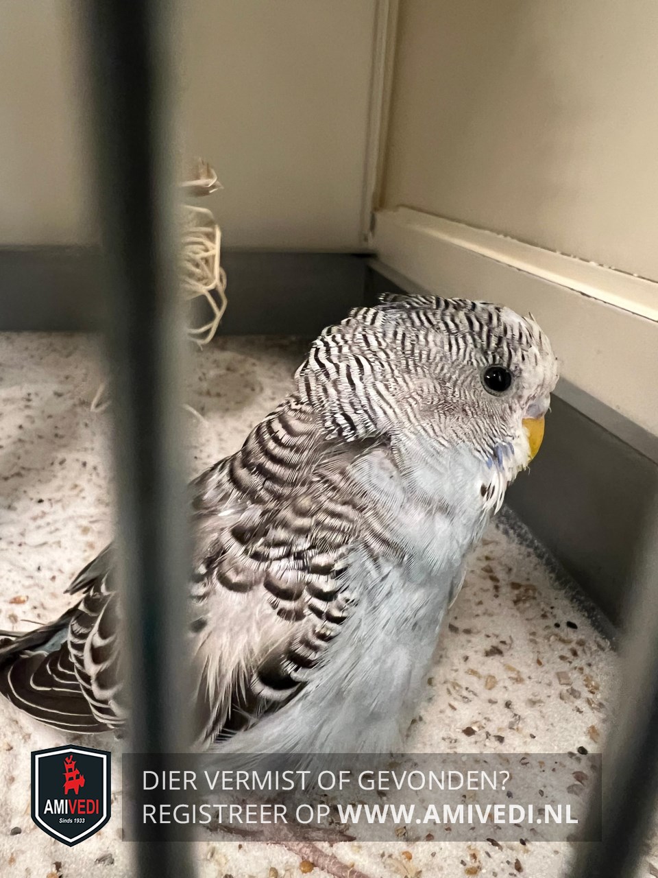 | Signalement | Grasparkiet, blauw, wit rond de snavel, vleugels en staart wit/zwart geschakeerd. |