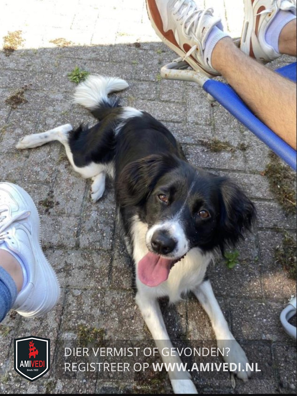 | Signalement | Zwart met wit. Witte snoet met zwarte neus. Witte kin, bef, borst, buik en poten. Witte vlek op de kont. Uiteinde staart is wit. |