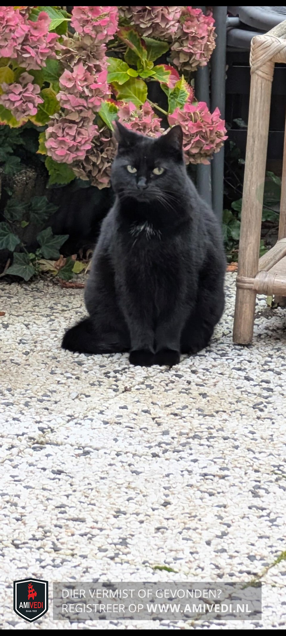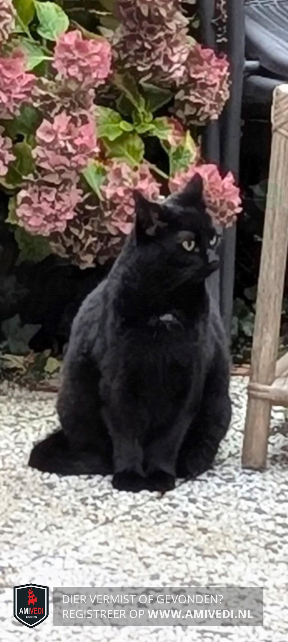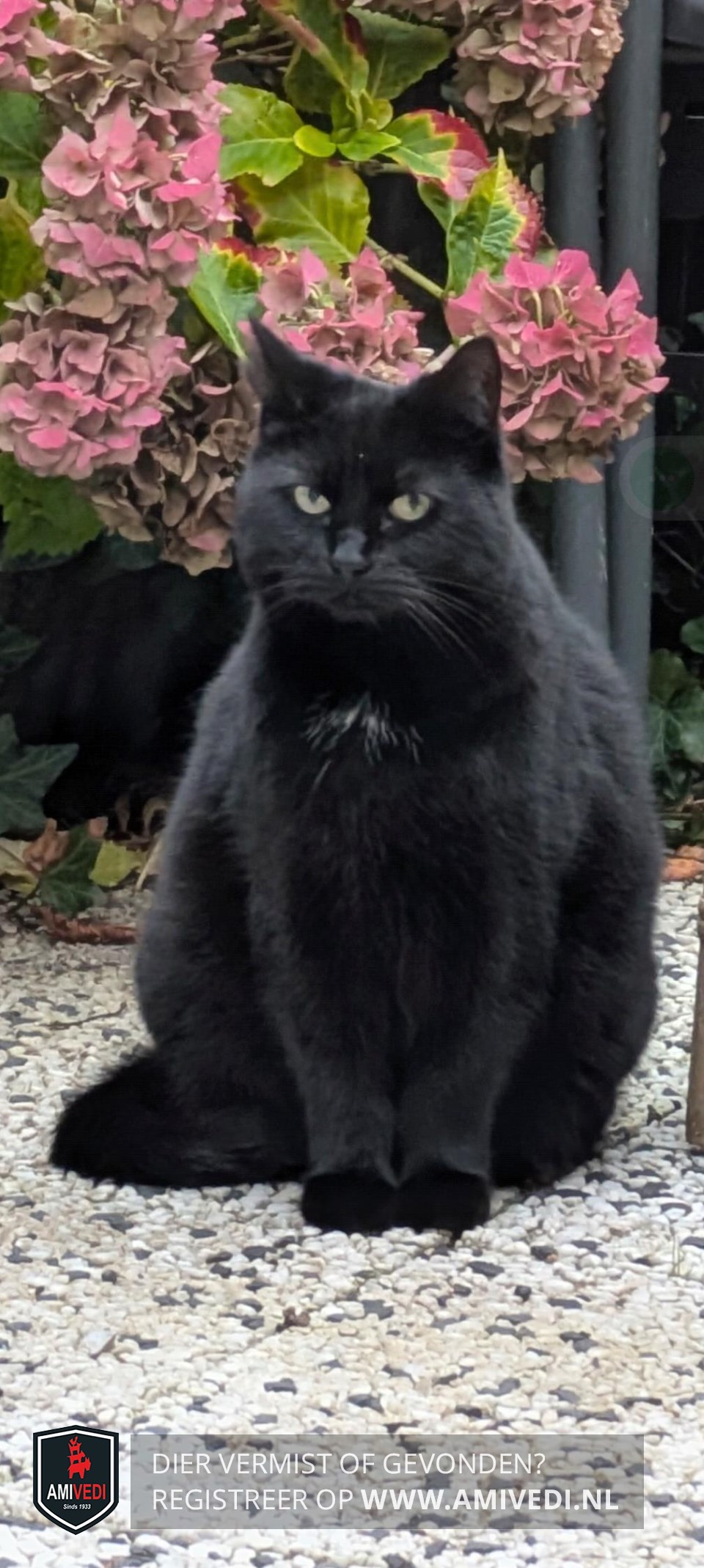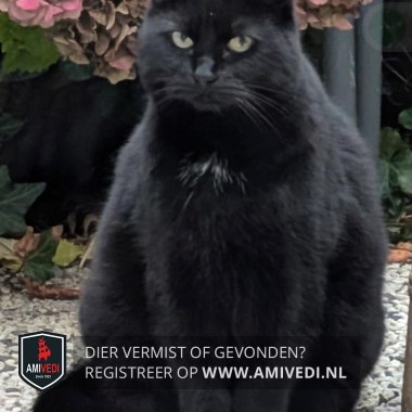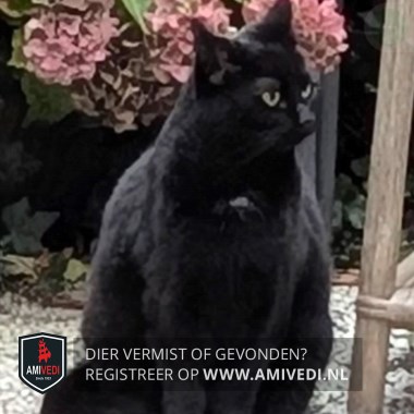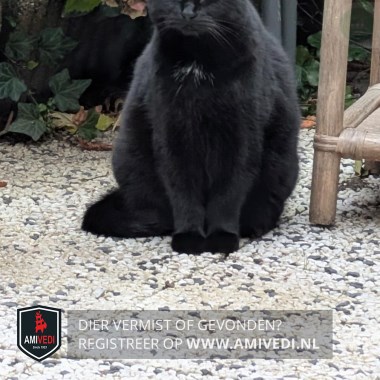 | Signalement | Sammy is een kruising tussen een Britse korthaar en Pers en heeft een diepzwarte vacht met een piepklein befje op de borst |