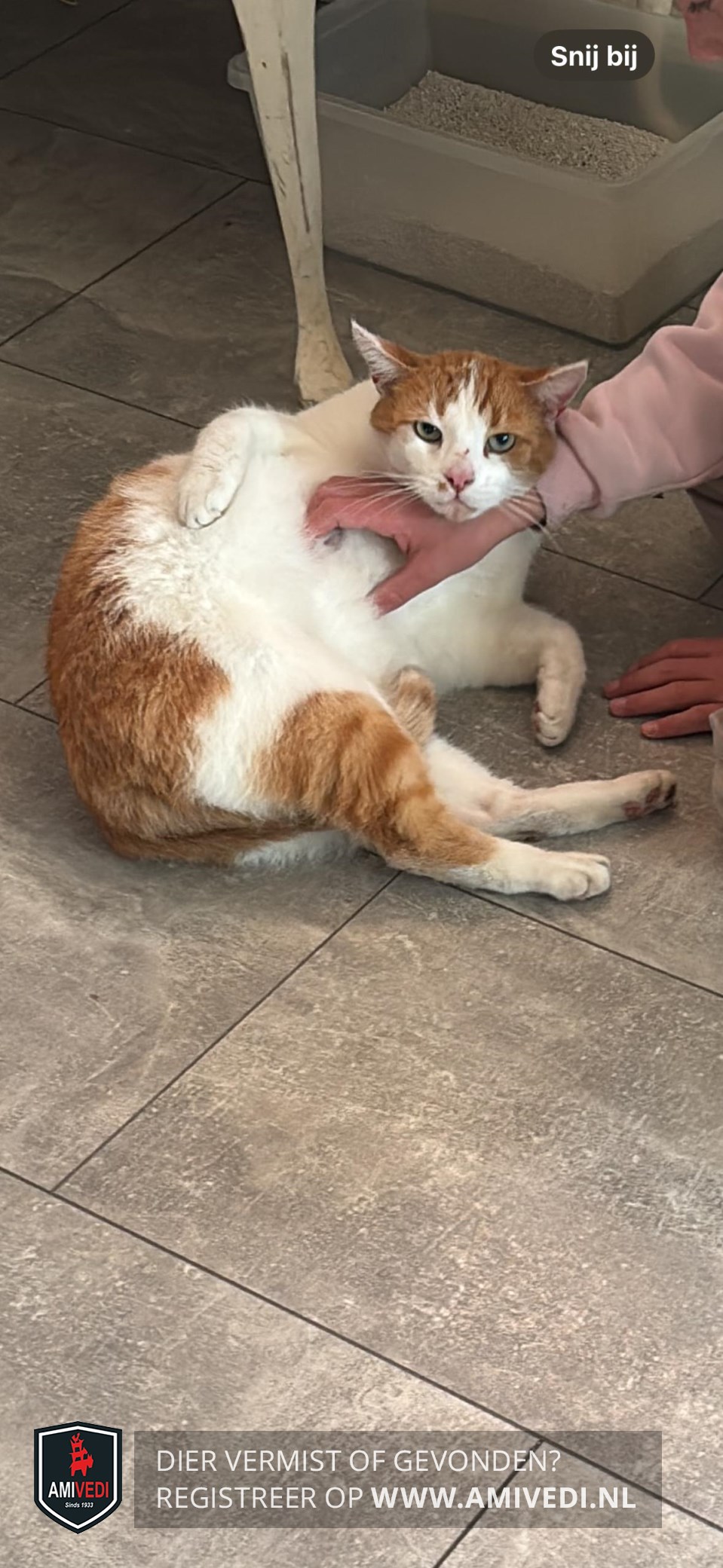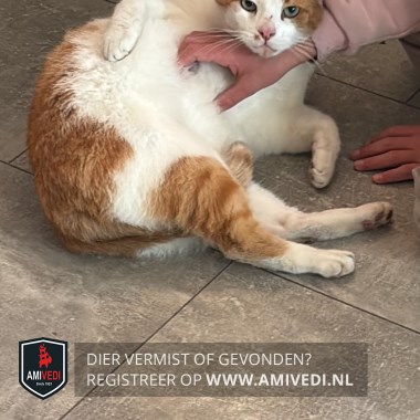 | Signalement | Rood kopje en oren. Litteken & hapje uit linker oor. Witte bles. Litteken over neus. Wit snuitje, hals, borst en buik. Litteken onder buik. Rode rug. Witte pootjes, rechts achter rode vlek. Geringde staart. |
