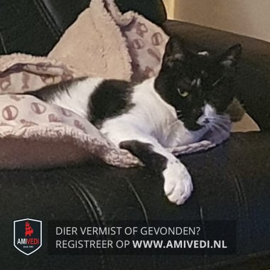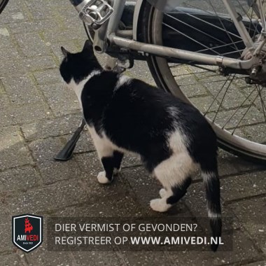 | Signalement | De poes is wit met zwart gevlekt. De conditie van de poes is slecht, broodmager en in behandeling voor nierfalen. |