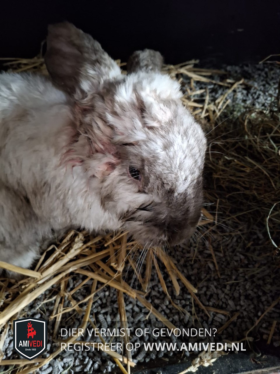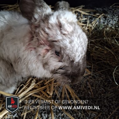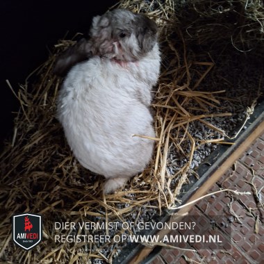 | Signalement | Beige tam konijntje, grijze oortjes, beige/grijs gemêleerd gezichtje. |