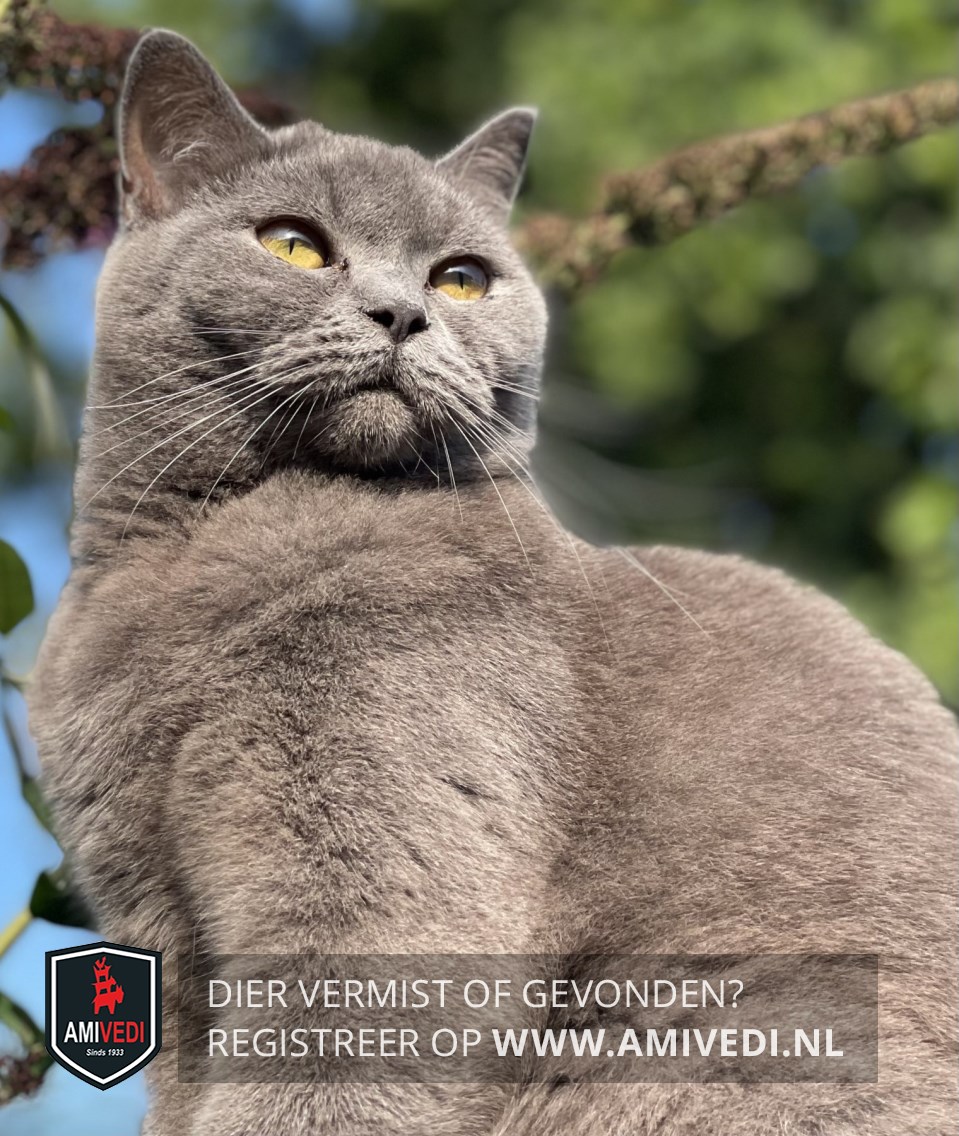 | Signalement | Geheel grijze (blauwe) Brits korthaar. Hele ogen. |