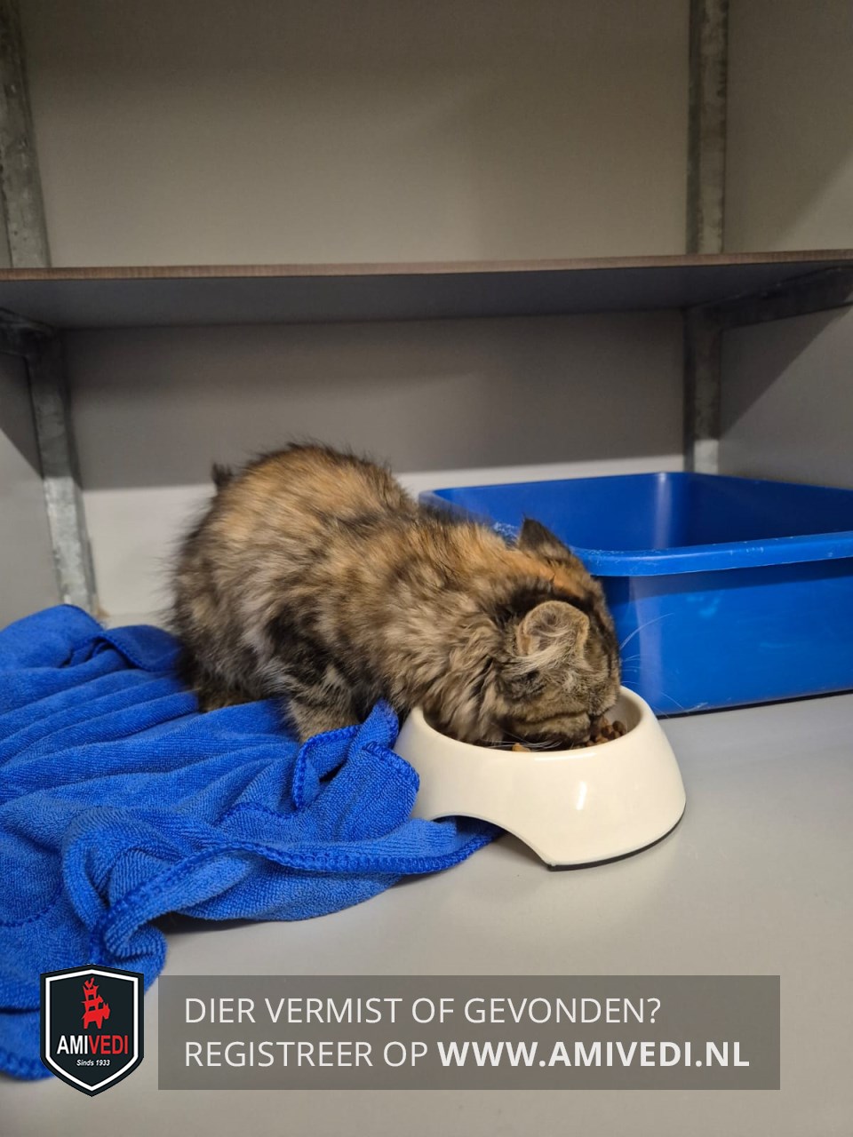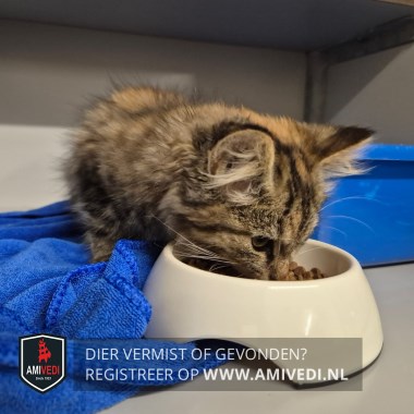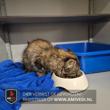 | Signalement | Kitten zwart, grijs, rood Cypers. Half lang haar. |