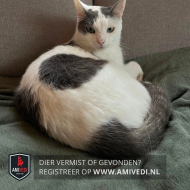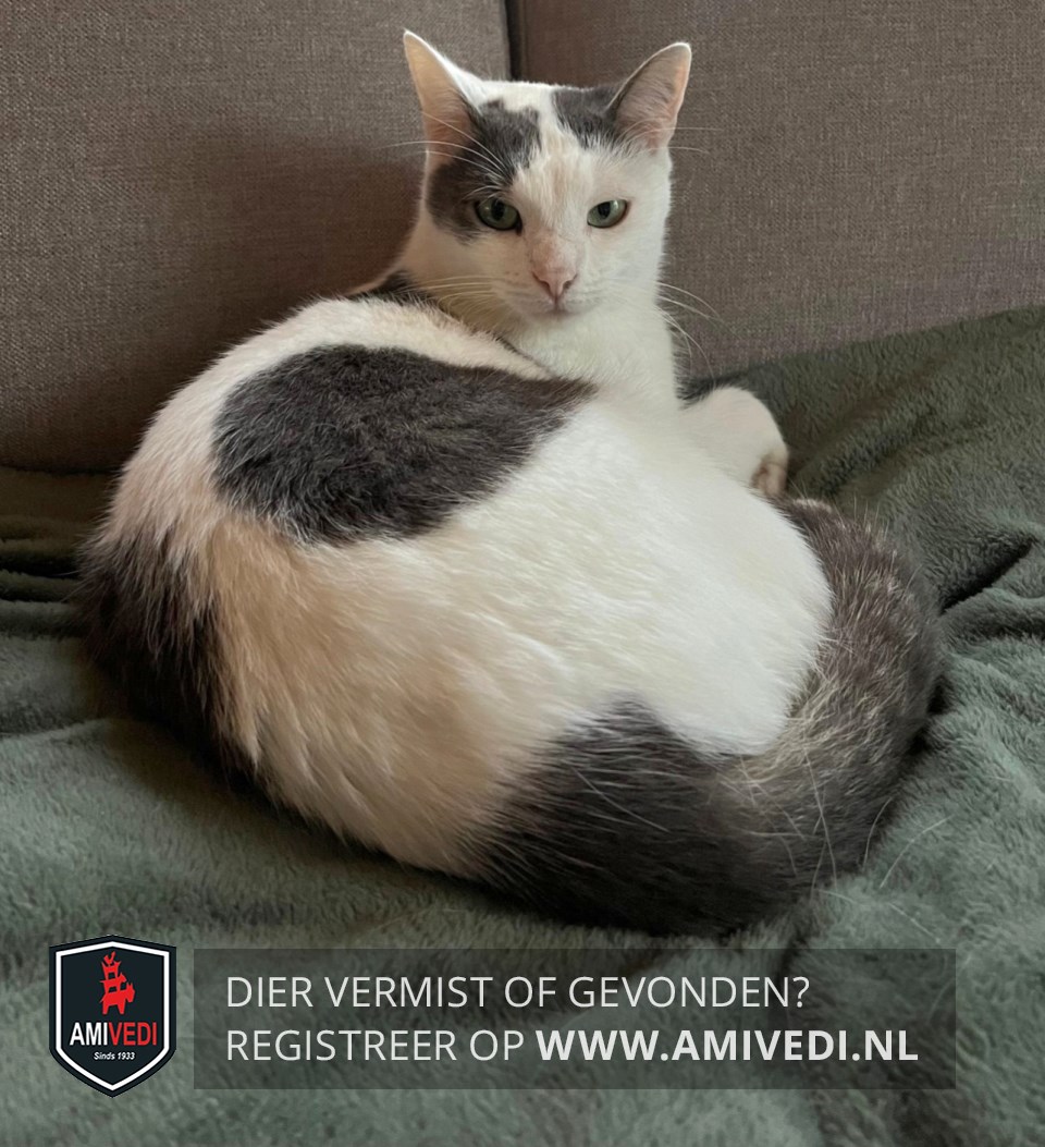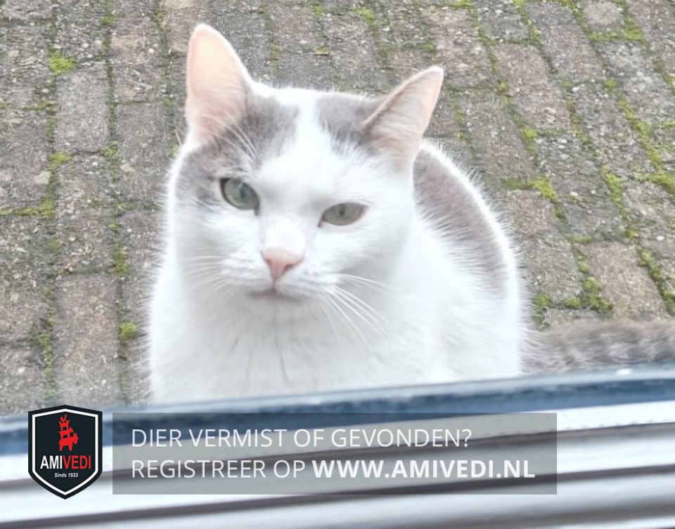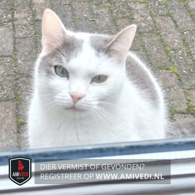 | Signalement | Wit met grijze kater. Grijze vlek voor rechter oor en voor linker oor. Op beide flanken een grote grijze vlek en grijze staart. Groene ogen |