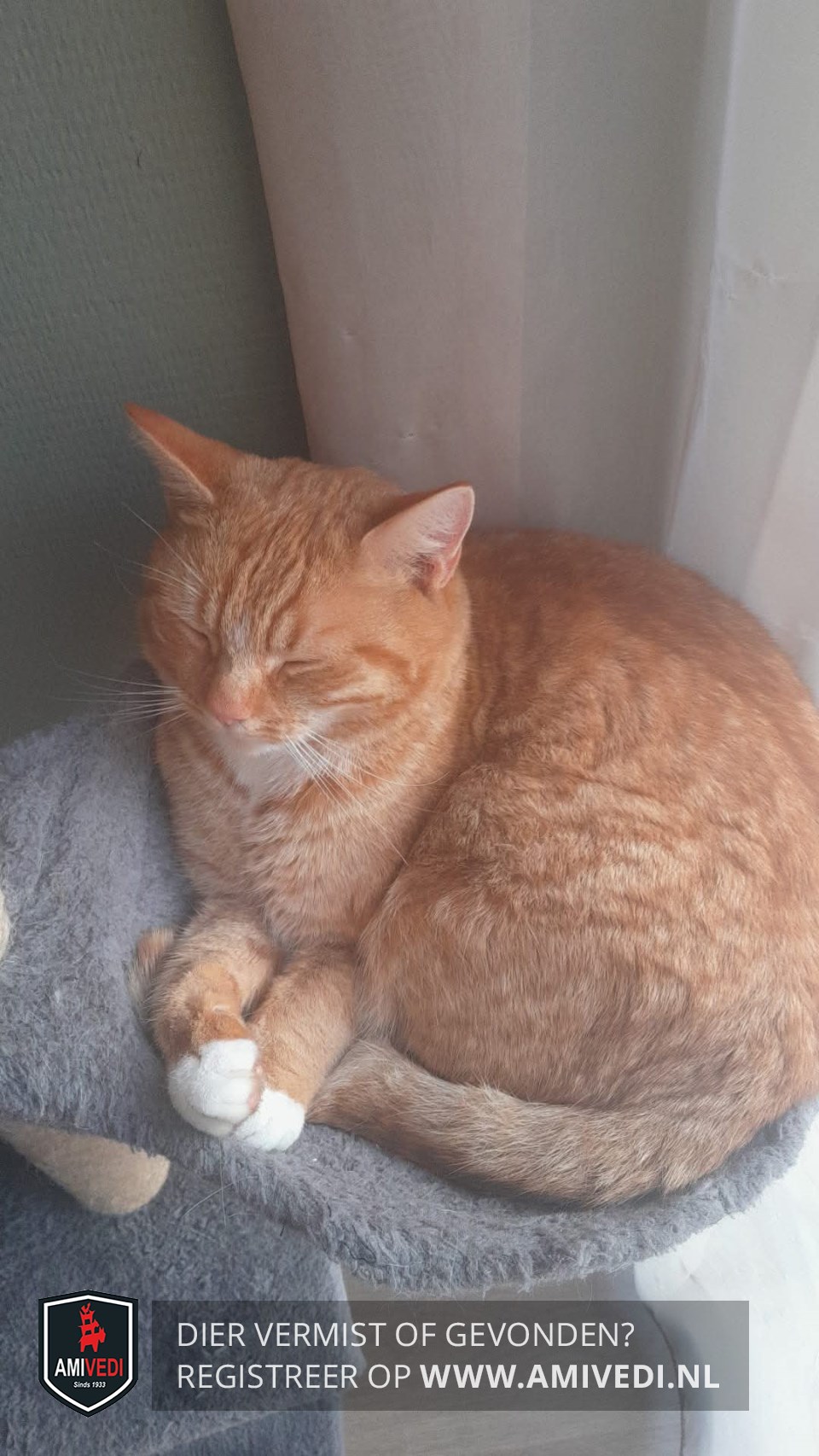 | Signalement | Cypers rood met wit. Witte snor, kin en bef. Voorpoten hebben witte voetjes. Uiteinde staart is rood/wit geringd. |