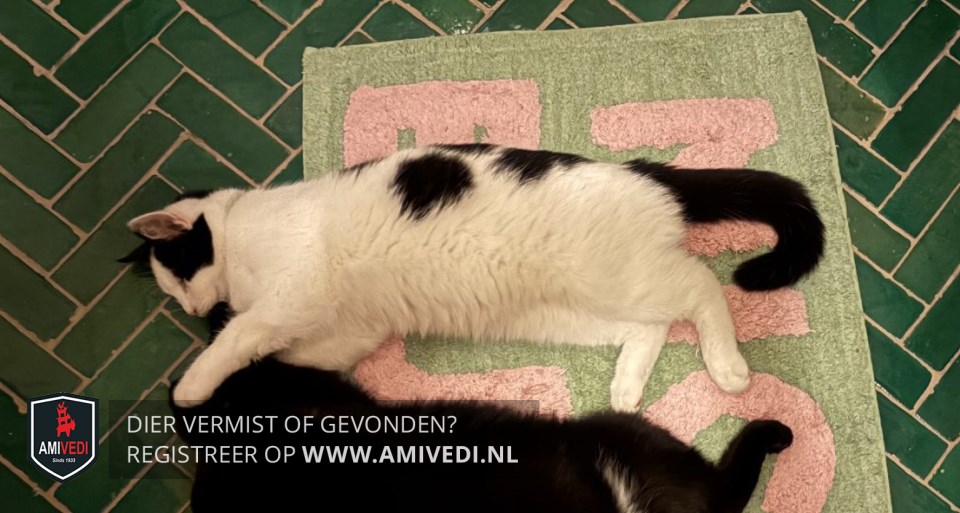 | Signalement | Vnl witte kat met zwarte oren doorlopend tot op de slapen, zwarte vlekken op de rug en een zwarte staart |