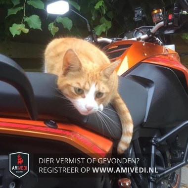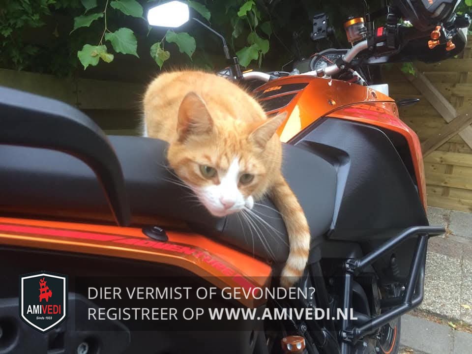 | Signalement | Cypers rood gestreept kop, wit tussen de ogen dat doorloopt over de neusbrug. Witte snor en kin. Lijf Cypers rood gestreept. Rechter voorpoot heeft een witte kous. De staart heeft lichte en donker rode ri gen. Staartpuntje is donkerrood. |