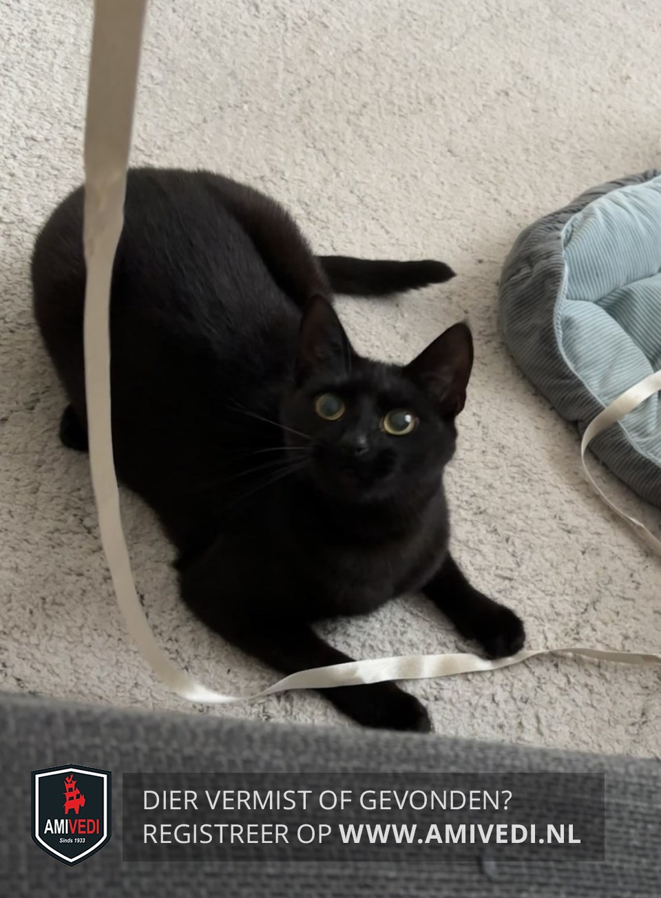 | Signalement | Miso is een kleine zwarte kat met in verhouding een lange staart en poten. Ze heeft een klein wit vlekje (redelijk verstopt) achter haar rechterschouder. Ze kan flink hard miauwen maar is vooral heel erg bang. Rood halsbandje met witte bloemetjes. |