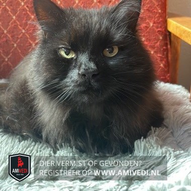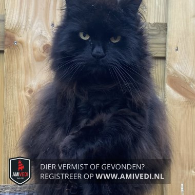 | Signalement | Langharige zwarte kat met bruine ondertoon, Europese korthaar X boskat. |