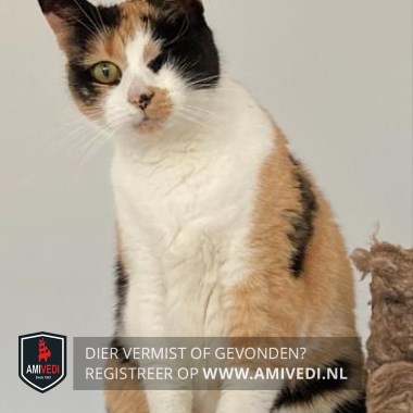 | Signalement | Lapjeskat. Linker oog mist. Witte bles. Rode vlek links bij de snorharen, zwart vlekje op het linker neusgat. Rood kinnetje. Puntje van het rechter oor is zwart, links rood. Rechter voorpoot is wit met een rood vlekje te hoogte van de kniekous. Linker voorpoot heeft een witte laars. |