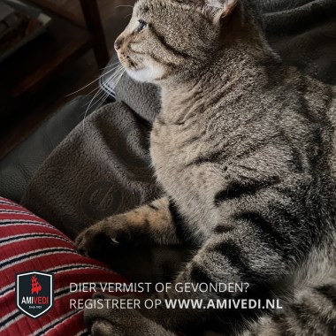 | Signalement | Geheel cypers bruin/zwart gestreept met bij de kin een beetje wit. |