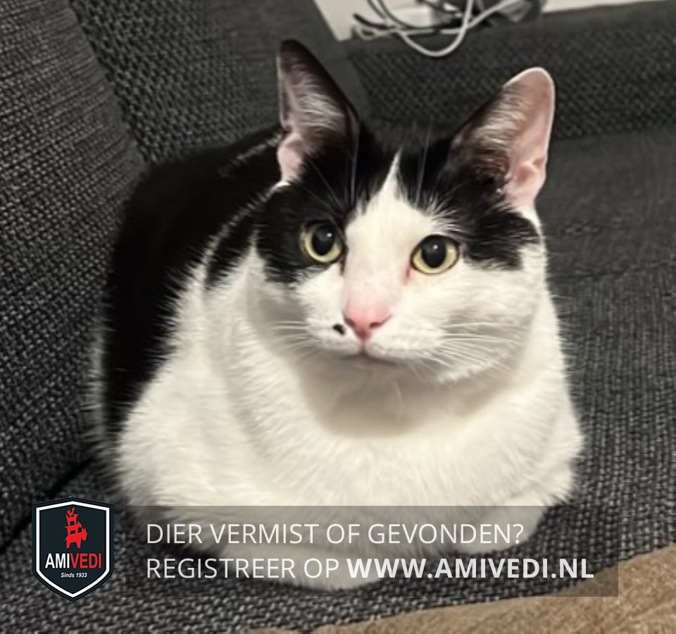| Signalement | Heeft een moedervlekje bij zijn neusje. 1 oog is met de witte vacht bedekt en de ander oog met zwarte vacht, zwart petje op met een witte bles , bef en witte pootjes. Zwarte vlekken op de rug en een zwarte staart. Stukje vacht op zijn linkerarm en in zijn nek zijn iets korter vanwege de dierenarts. |
