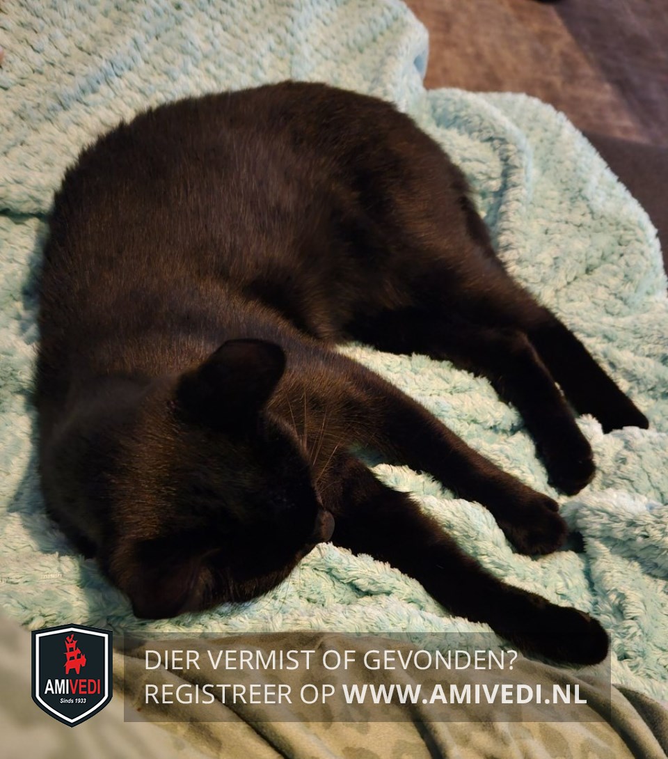| Signalement | Panter is helemaal zwart en heeft onder haar kin een paar witte haartjes. |