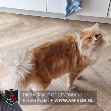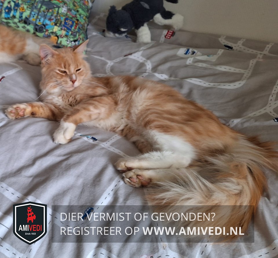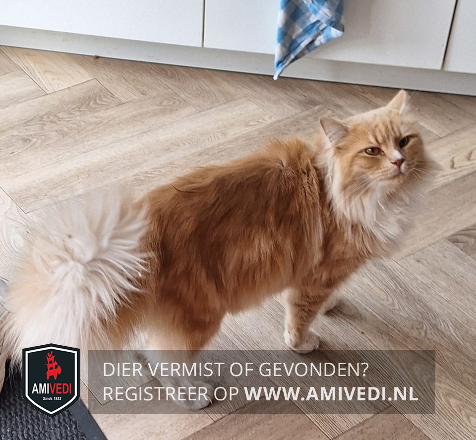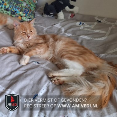| Signalement | Kruising Maine Coon; grote pluimstaart; rood met witte accenten: wit streepje op de neusbrug en links van de neus; witt(ig)e bef, wit aan de voetjes van de voorpoten en kousjes aan de achterpoten; de borst en buik zijn wit |