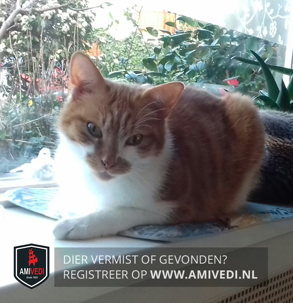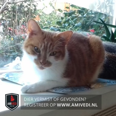 | Signalement | Cypers rood gestreepte kater met wat wit aan de wangen , witte hals en bef, witte pootjes. Cypers rood petje op , rode bles en snuit, rode vlekken over de rug. |