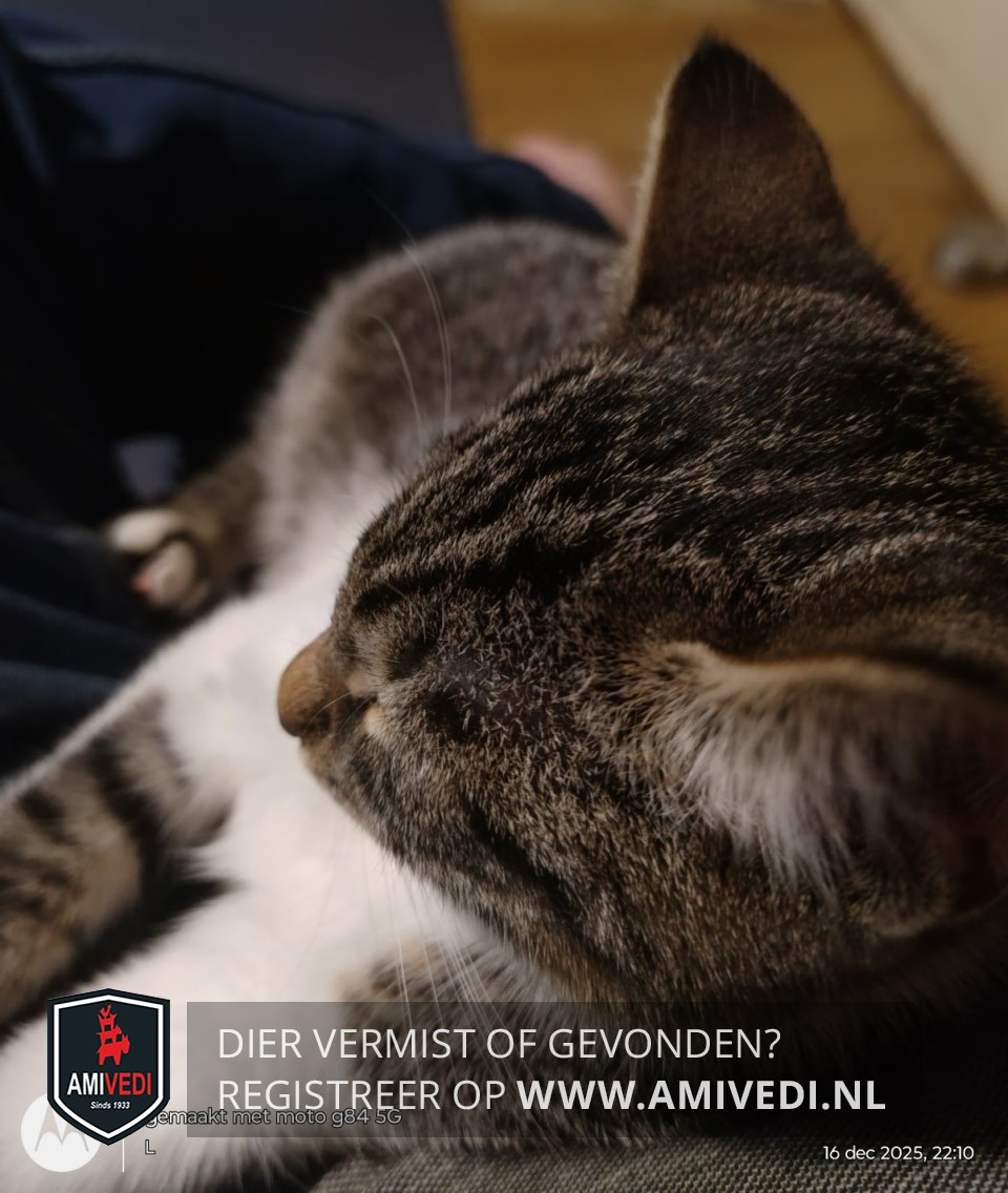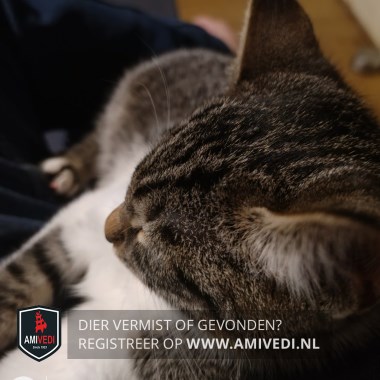 | Signalement | Kat is een heel klein. Cypers, donker kopje. Wit bij de bef en de borst. |