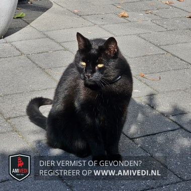 | Signalement | Zwarte kat, groot beest. Ruim 6 kg. Miauwt veel. |