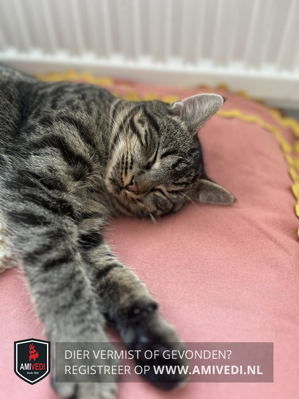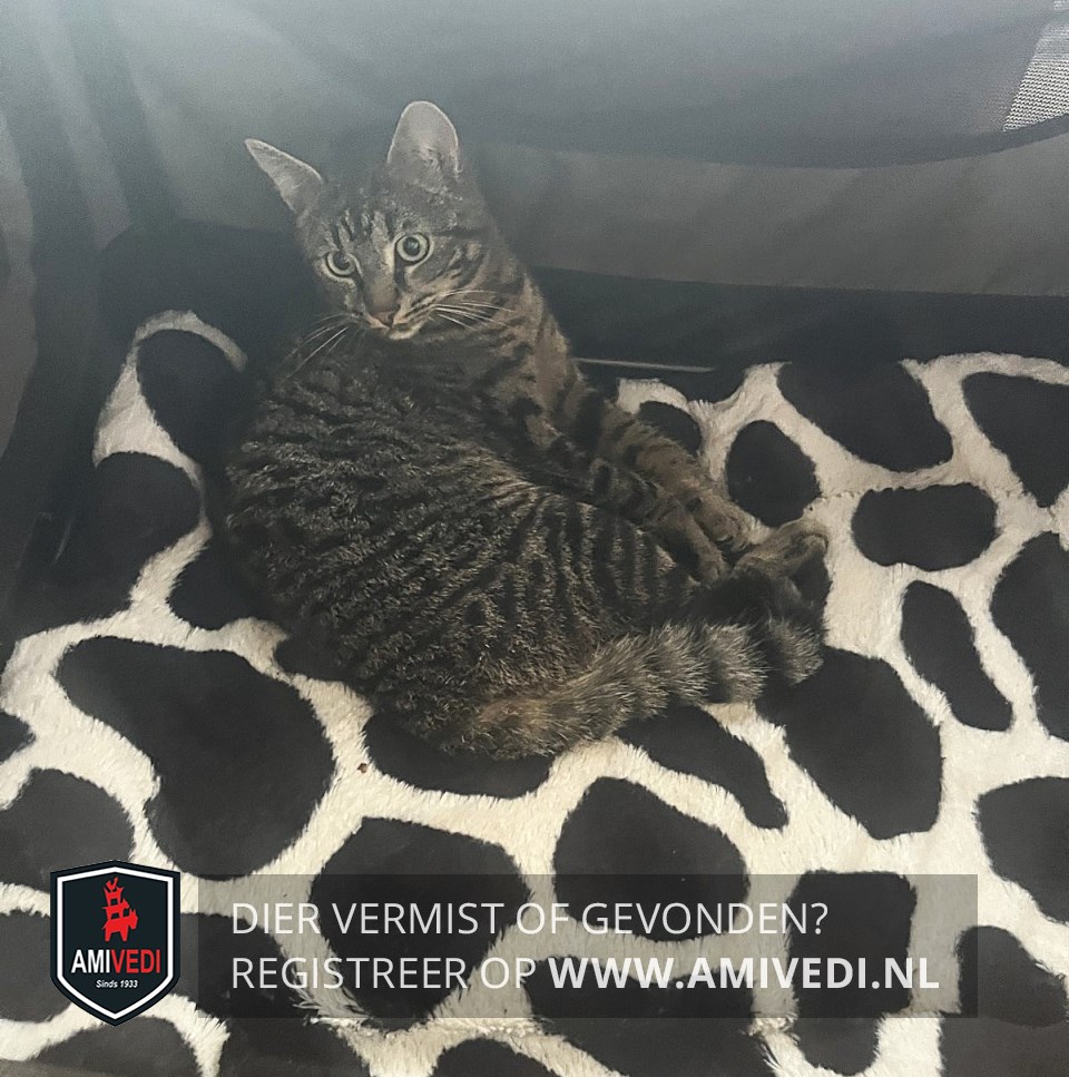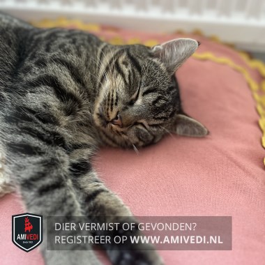 | Signalement | Grijs met zwart cypers gestreept. Wat lichter van kleur rond de bek. gelijkmatig gestreept over hele lijf. Zwarte voetkussentjes. |