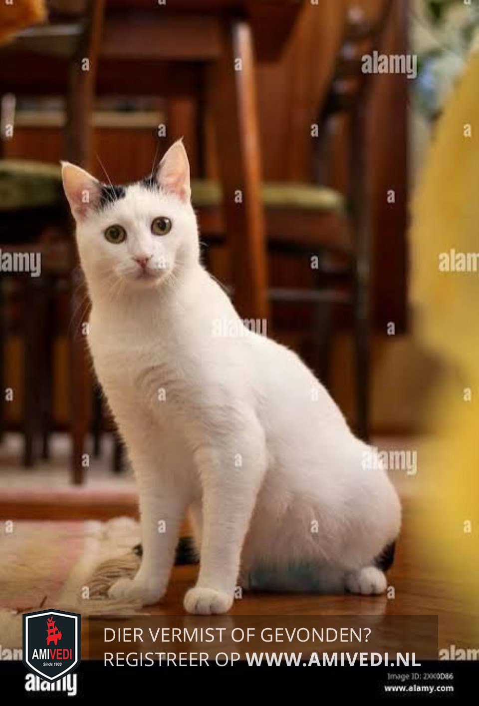| Signalement | Witte kat, zwart aan de basis van de oren en zwarte staart. Hij heeft een kleine bult bij zijn rechterwang. Hij reageert op Shlomo. Vanwege zijn schildklier heeft hij dagelijks 2x medicatie nodig. |