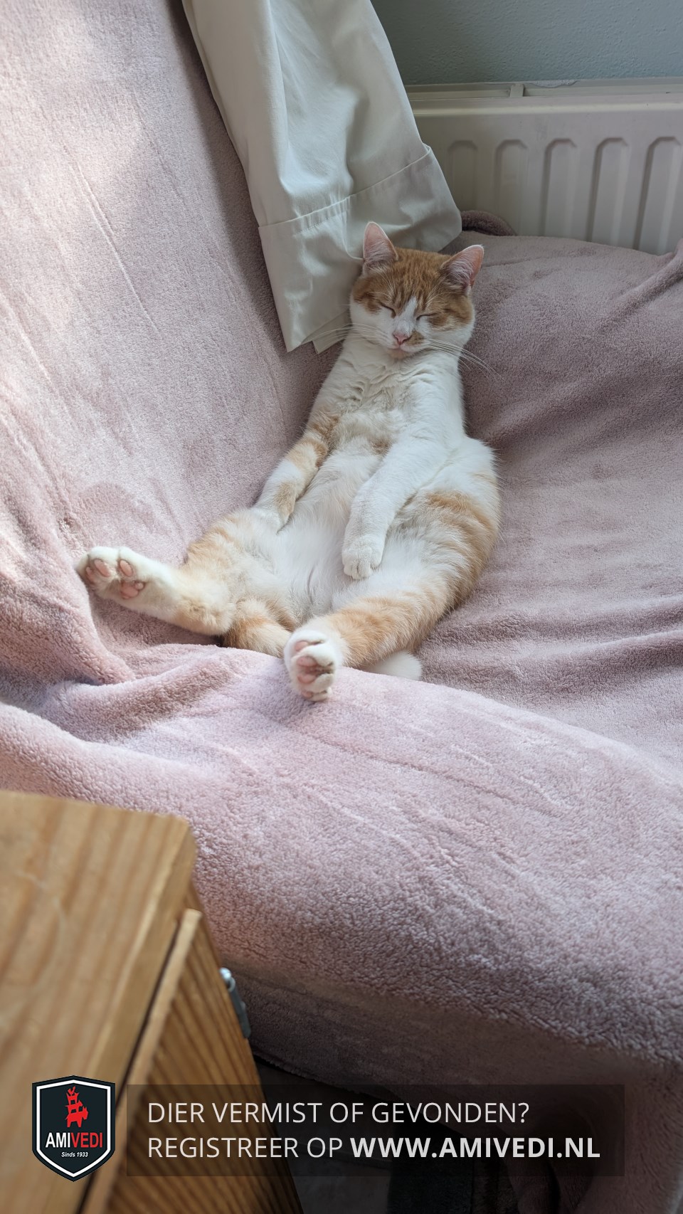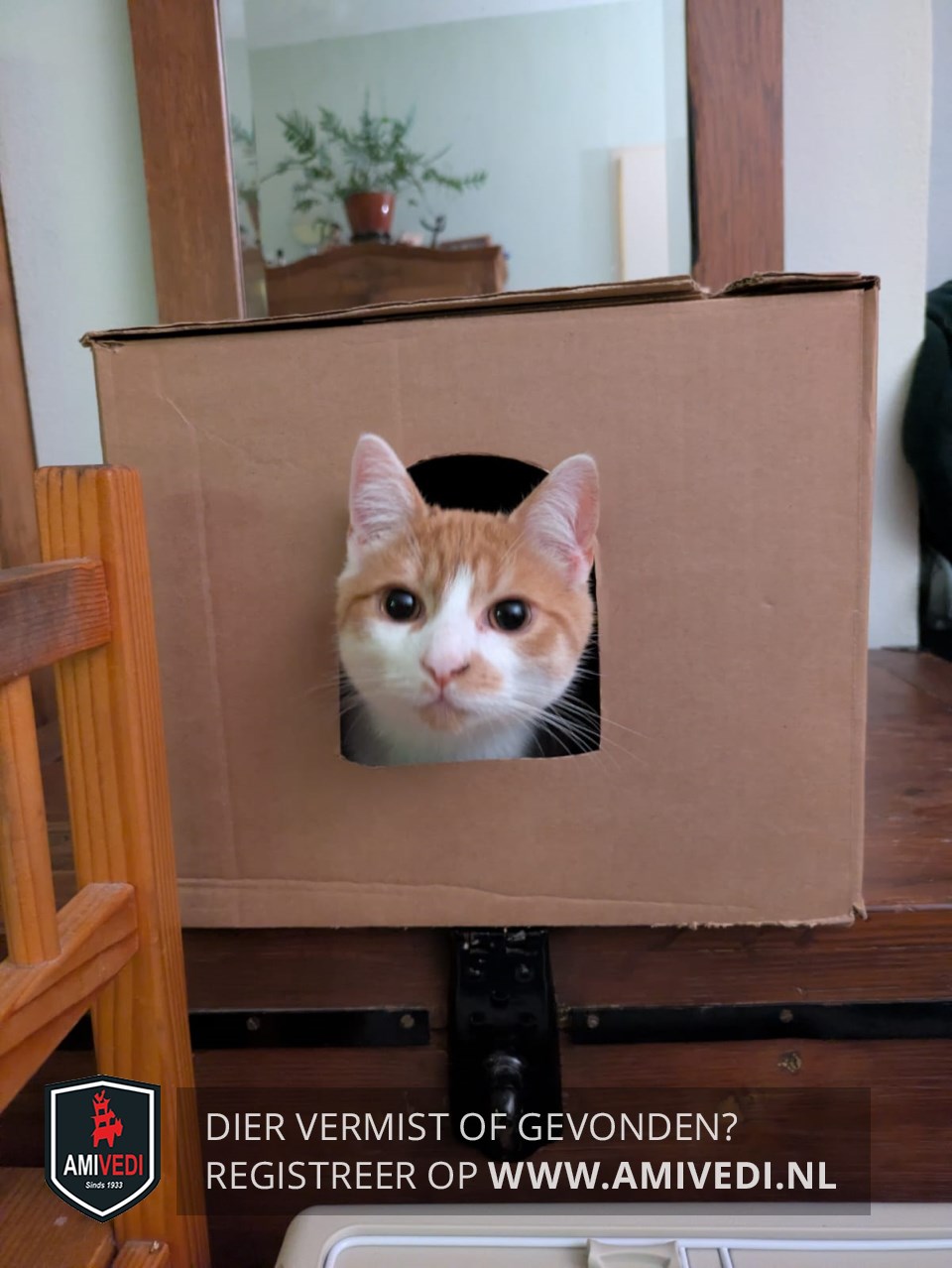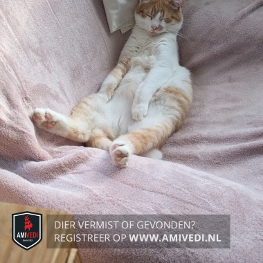 | Signalement | Wit met Cypers rood/oranje gestreept, rood/oranje petje, kop, witte neusbrug, linkerkant van de neus een rood/oranje vlekje, rood/oranje vlekje op de kin, rug en flanken rood/oranje gestreept, witte poten met ook rood/oranje gestreepte vlekken op de poten, rood/oranje gestreepte staart |