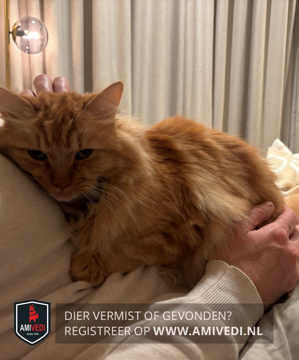 | Signalement | Rood/beige gemêleerde langharige kater. Wat beige/wit op de kin. Draagt een tracker (beige) met rode naamtag met "Yuki" erop en een rood halsbandje. |