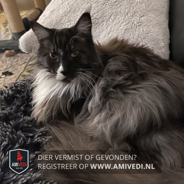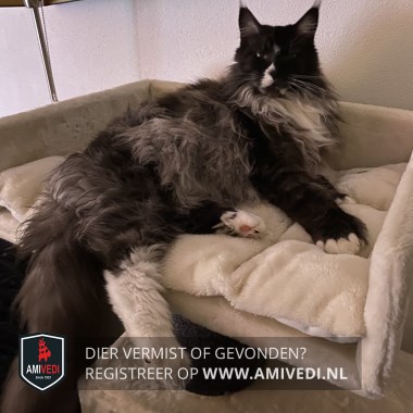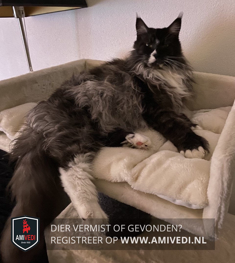 | Signalement | Bentley een zwart (smoke) met wit. Wit aan rechterkant neus, witte bef. Voorpootjes witte tenen, achterpootjes witte sokken. Hij heeft zwarte pluimpjes op z’n oren en aan de binnenkant oor witte haren. Grote kater met een hoog mauwtje. Het is een schrikachtige kater. |