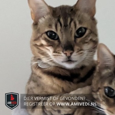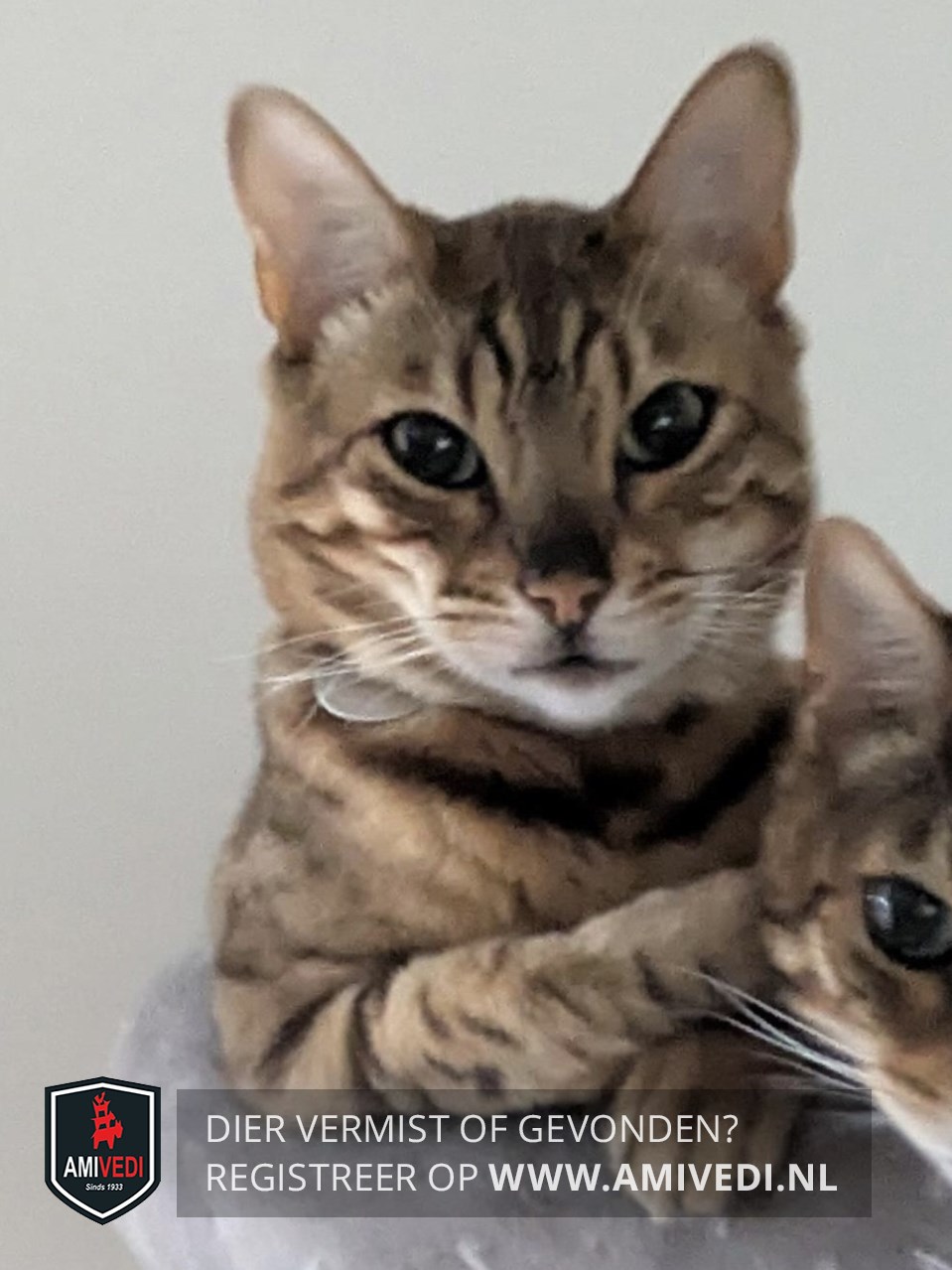 | Signalement | Nugget is een Bengaalse kat in het bruin met donkere strepen en wit rondom de snuit. |