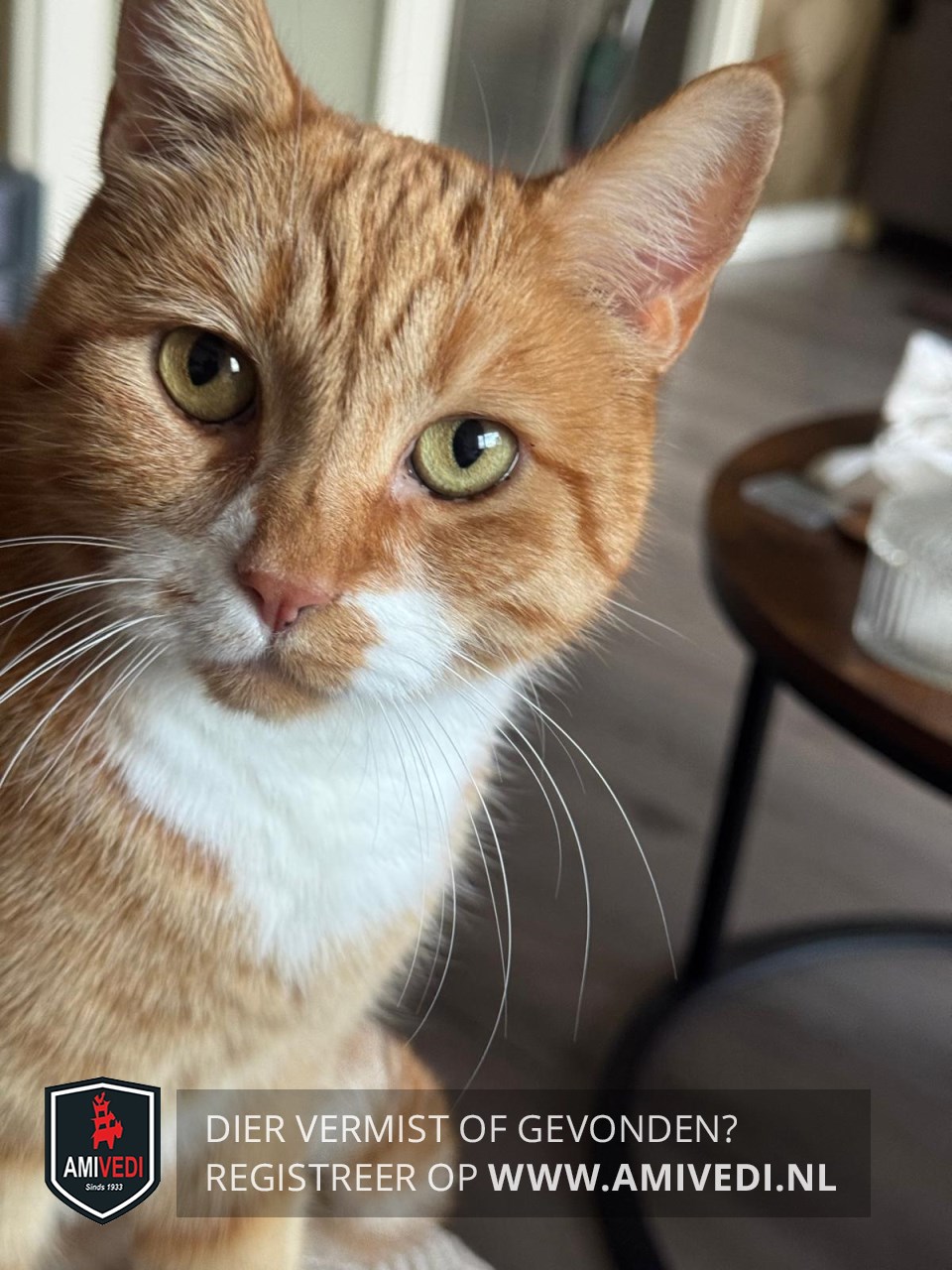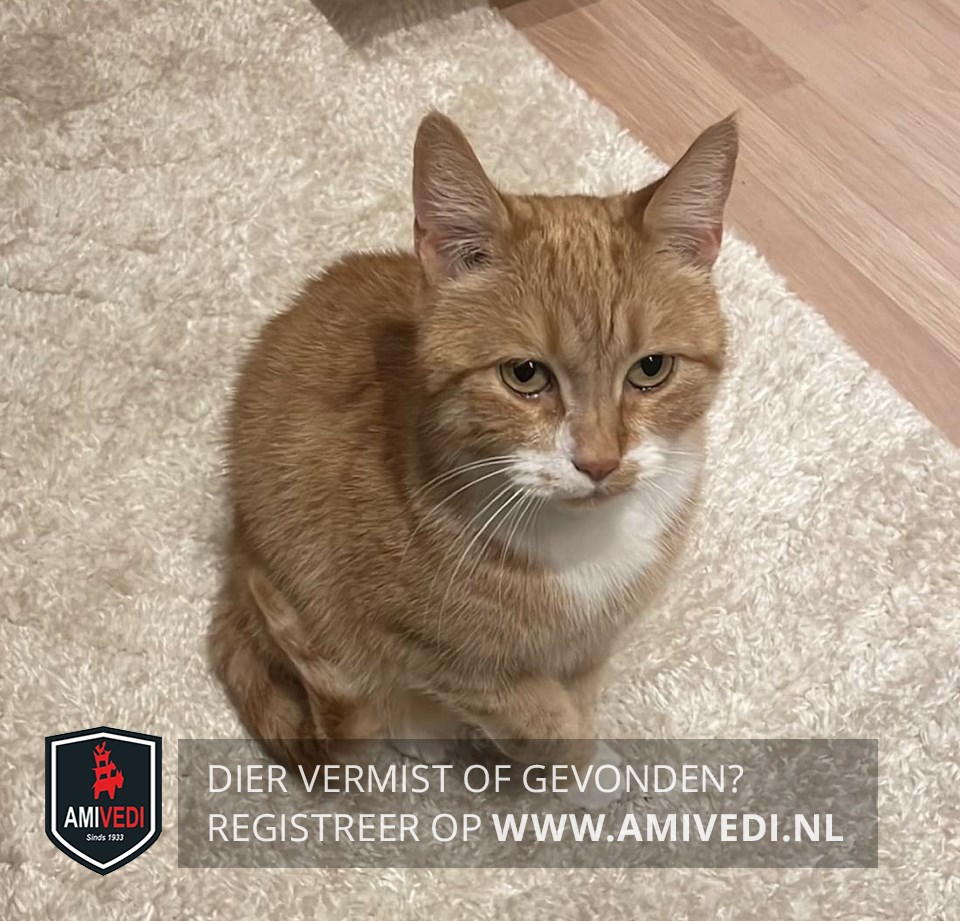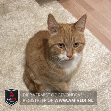 | Signalement | Cypers rood gestreepte poes met een rode bles en witte wangen, rode kin en een witte bef, witte teentjes en een rood gestreept lijfje. |