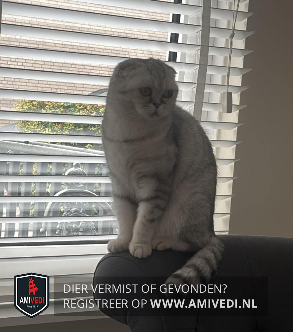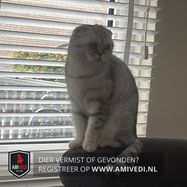 | Signalement | Scottish Fold wit met grijs gestreept. Staart heeft duidelijke grijze ringen. Mushi heeft gevouwen oortjes en is een binnenkat, komt nooit buiten! |