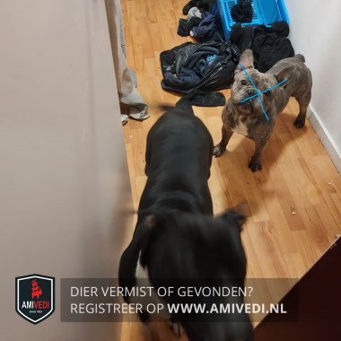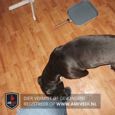 | Signalement | Zwarte Staffordshire-bulterriër met een witte borst |