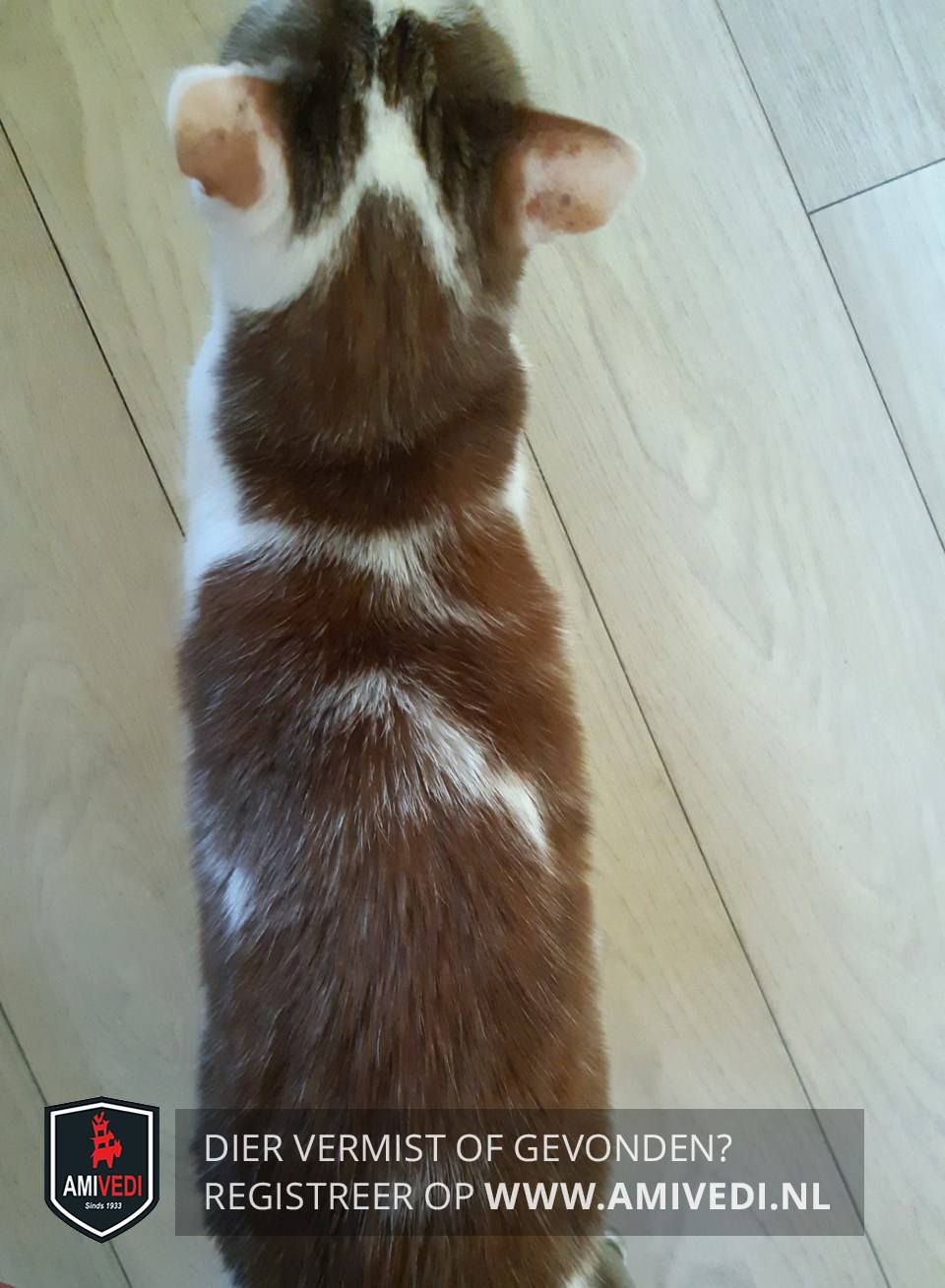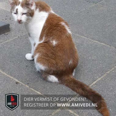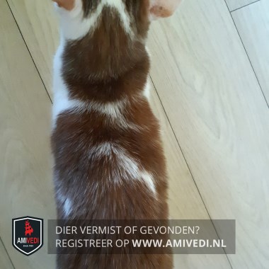 | Signalement | Rood/oranje met witte poes, witte bles met een rode vlek naast rechteroog binnenkant, rode vlekken tussen en onder de oren en naast de ogen aan de buitenkant, rug is rood met witte vlekken, witte borst, buik en witte voorpoten, rode staart, heeft epilepsie. |