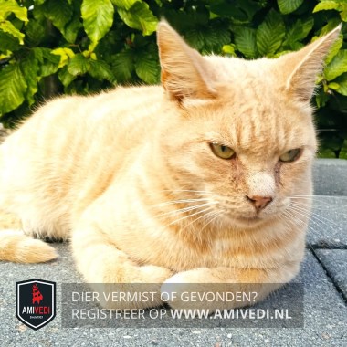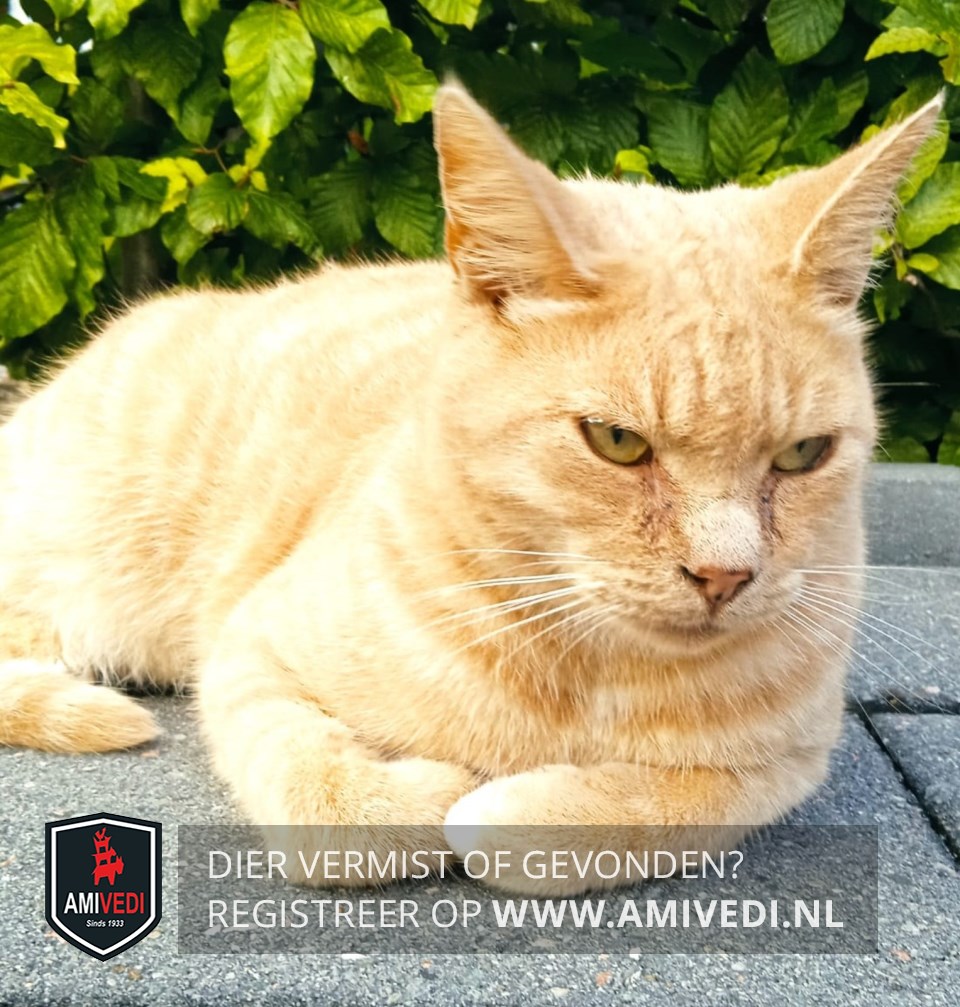 | Signalement | Rood/oranje kater , linker voorpootje witte teentjes. |